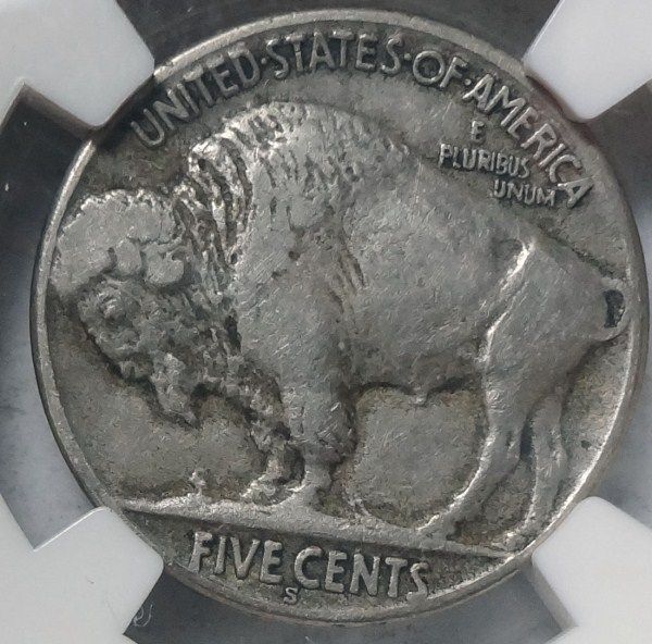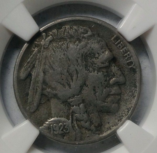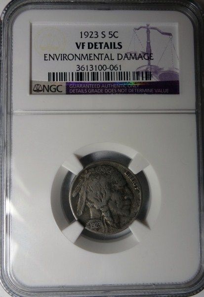 1923-S BUFFALO NICKEL NGC VF SAYS DAMAGE, JUST DARK, EST. $55.00-$65.00