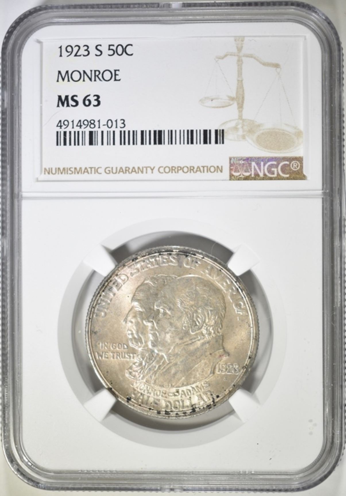 Grading:  Every person has their own opinion.  It is the responsibility of the buyer to examine and grade to their own satisfaction before they bid.  ABSOLUTELY NO COIN RETURNS ON THE BASIS OF GRADE.  Buyers shall rely entirely on their own inspection and information. Our estimates are values taken from the latest "Coin World" trends based on t he grade listed of a coin. This value/estimate is not an inducement to bid this amount. Bid the amount you wish. If you have questions or concerns about any coin, call us before you bid.