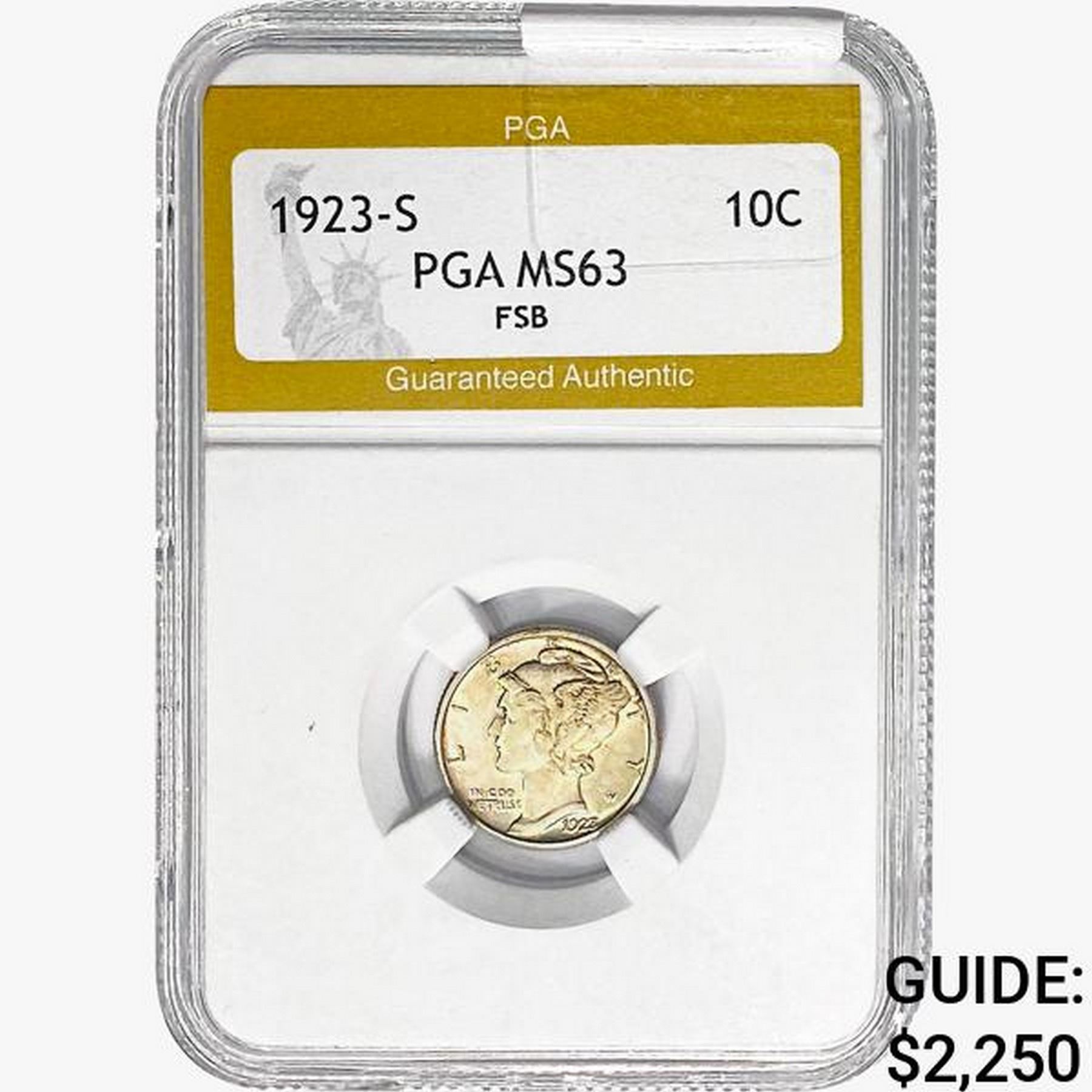 1923-S Mercury Silver Dime PGA MS63 FSB