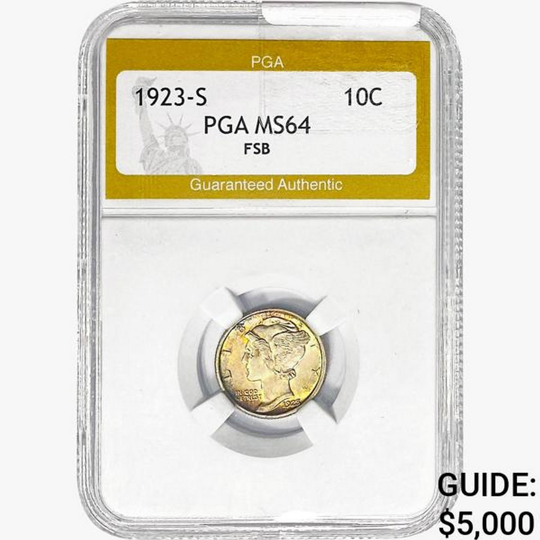 1923-S Mercury Silver Dime PGA MS64 FSB