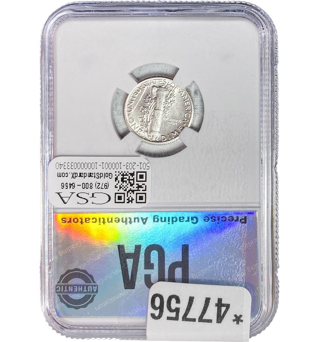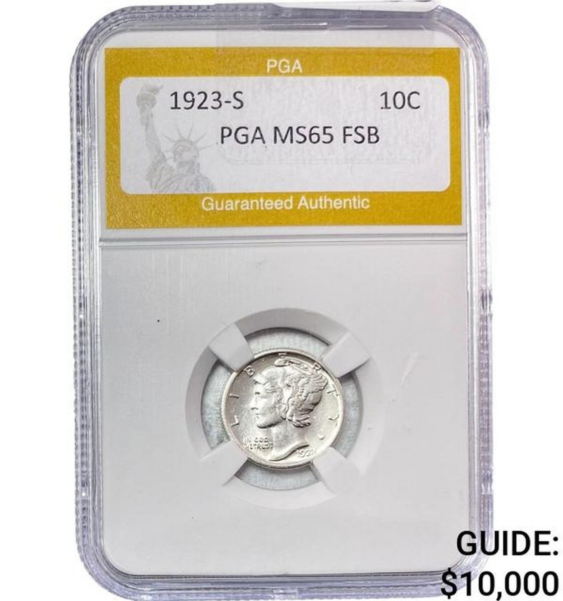1923-S Mercury Silver Dime PGA MS65 FSB