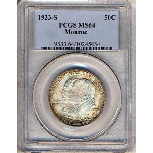 <b>1923-S Monroe Doctrine Half Dollar. PCGS graded MS64.</b> Lovely peripheral gold toning over silvery luster <b>(PCGS # 9333)</b> <i>