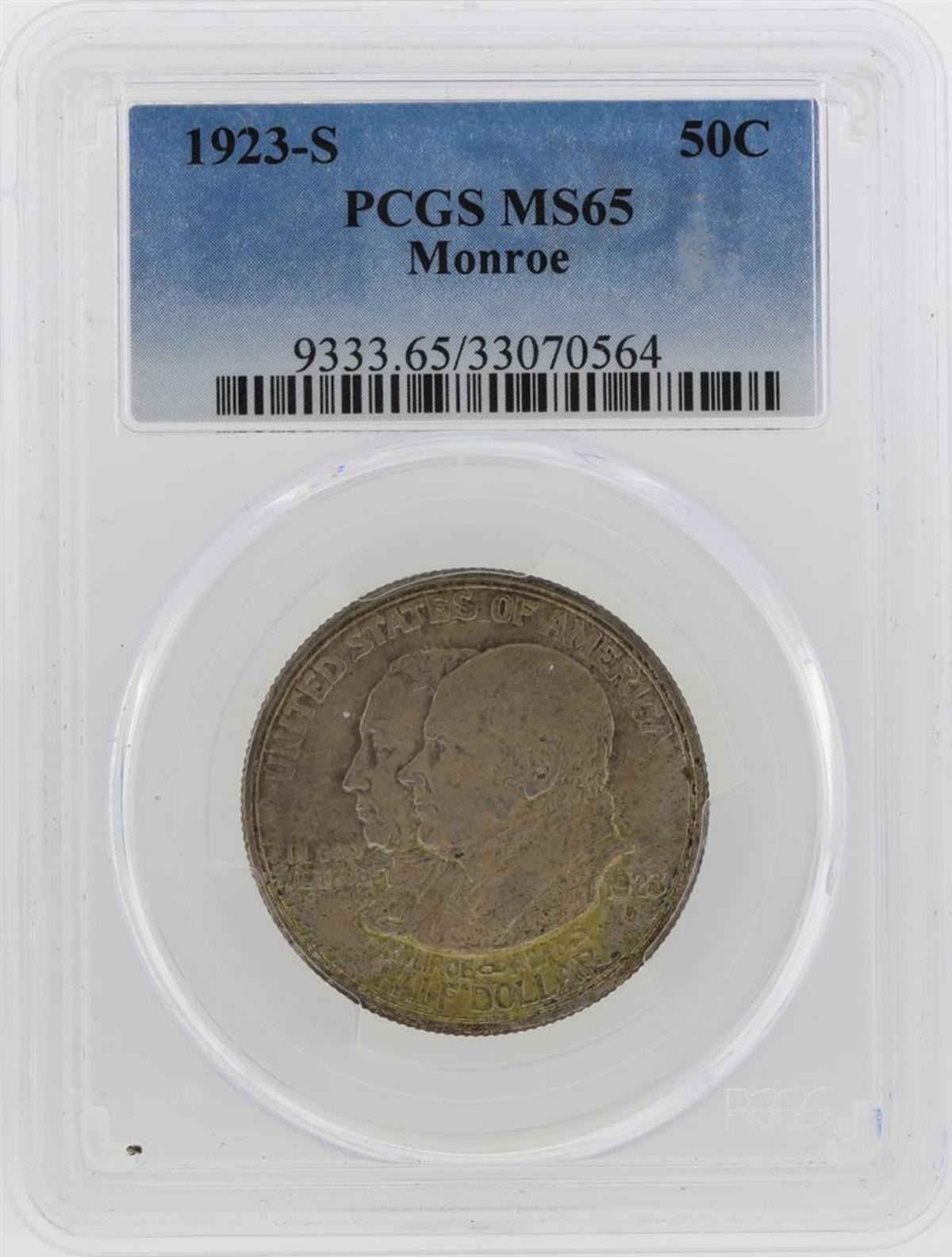 One 1923-S Monroe Doctrine Centennial Half Dollar Coin PCGS MS65. PCGS Certified.