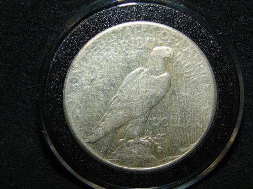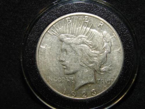 1923-S U.S. PEACE DOLLAR. Coin is in circular case.