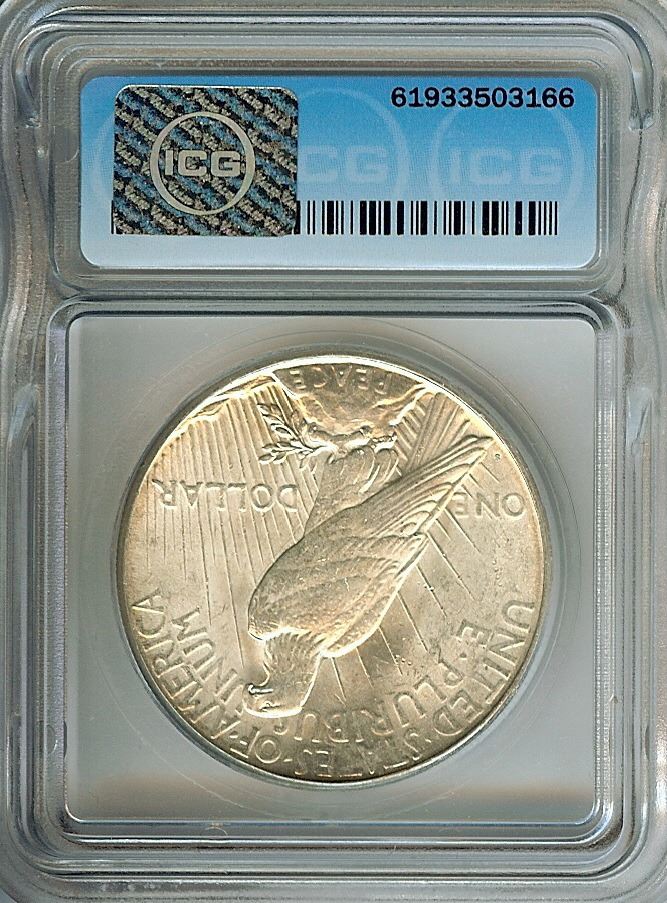 1923-S PEACE SILVER DOLLAR ICG MS63