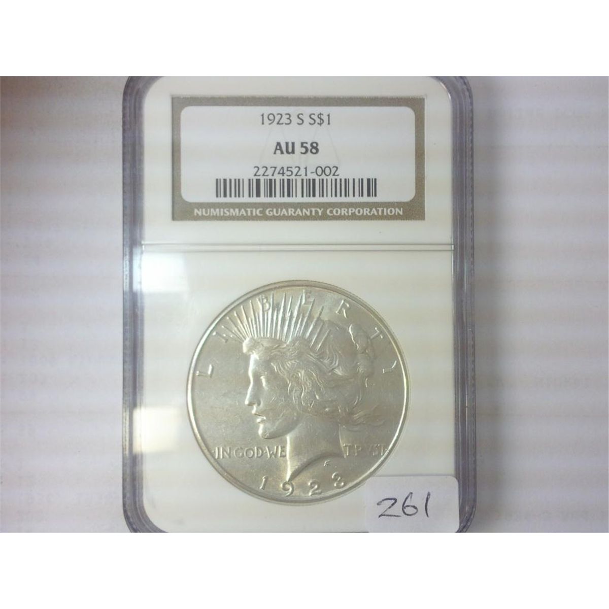 1923-S PEACE SILVER DOLLAR NGC AU58