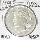 1923-S PEACE SILVER DOLLAR RED BOOK VALUE IS $150.00 *RARE MS-63 HIGH GRADE* SILVER DOLLAR CAME OUT OF SAFE!! ***Coin, Currency & All Items Listed in this auction - Grades, Conditions and Values are not Safe Deposit Coins LLC Responsibilty. Grades, Condition and Values are determined by Consigner(s) & Buyers ONLY*