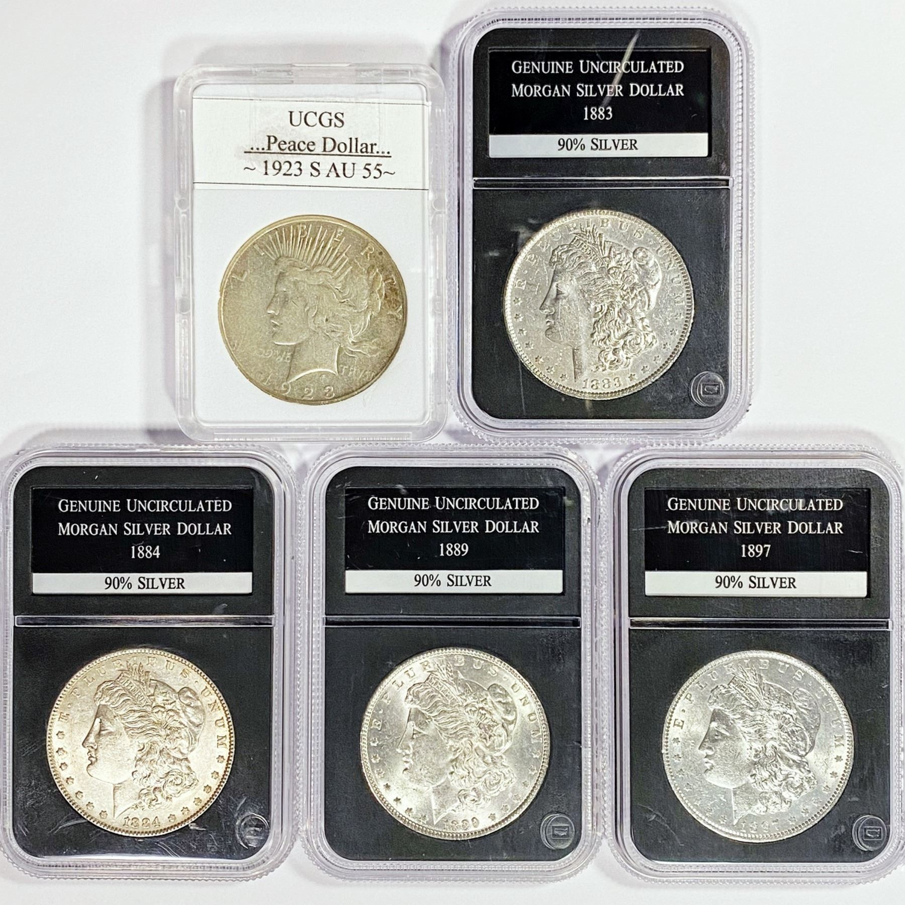 1923-S Peace $1, 1883-1897 Morgan $1 Set (5)