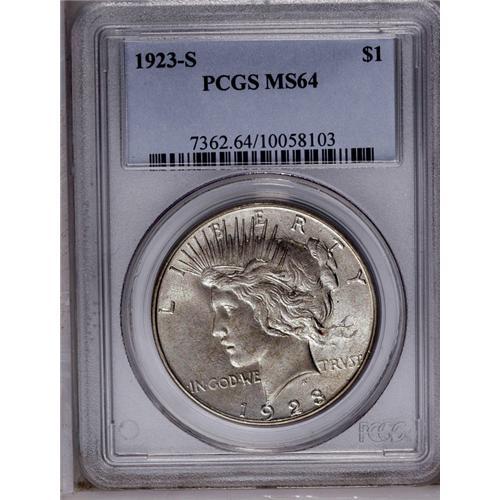 1923-S S$1 MS64 PCGS. A creamy near-Gem example with a 1923-S[img border='0' src='http://www.heritag