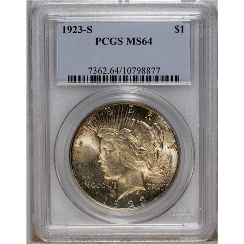 1923-S S$1 MS64 PCGS. Potent luster radiates from spec