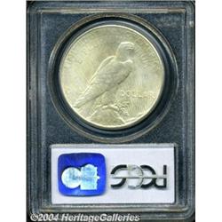 <B>1923-S<S$1> MS64 PCGS.</B></I> Fully lustrous but a little softly defined at the centers, as is normal on this issue. A hint of light color overlays each side. <BR><BR><B>Important notice:</B> Heritage usually auctions material at the rate of 200-250 lots per hour. On some occasions eBay Live bid software or the Internet may not be able to keep up with the pace of the auction. We recommend placing a realistic absentee bid now as insurance to avoid disappointment. Occasionally the auctioneer may eliminate or reject an eBay Live bid, and the auctioneer may also reopen a lot after the close of the eBay live bidding (usually because we missed an audience bid), and may reject your bid even if it shows you as the winning bidder. By bidding via eBay Live, you agree that Heritage may award the lot to another bidder at its sole discretion under the circumstances described above or any other reasonable circumstances. Since eBay bids are not shown to us until we open the lot on the floor, we treat those bids just like floor bids. In most cases the floor responds before the eBay bid is presented to us, due to Internet lag time, so for consistency we have made it a policy that floor bids are always considered first over tie eBay live bids. Also please note that all Heritage lots purchased through eBay Live carry a 20% Buyer's Premium. Please make sure you read the Terms and Conditions before you bid. </span></font></tr></table></td></tr></table>