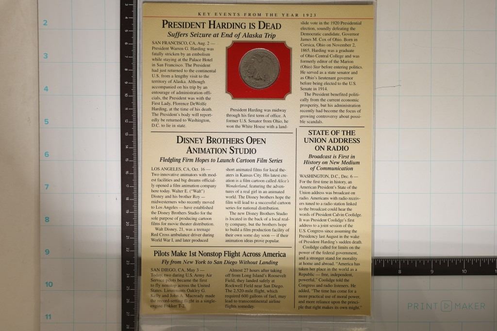 4.5 CENT UNCANCELLED US STAMP ON INFO CARD WITHIN A PLASTIC SLEEVE