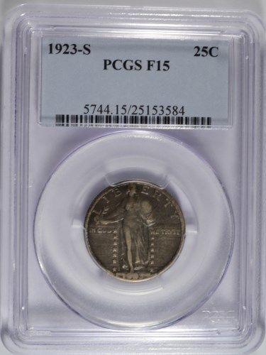 1923-S STANDING LIBERTY QUARTER PCGS F-VF 15, RARE, VERY HARD TO FIND