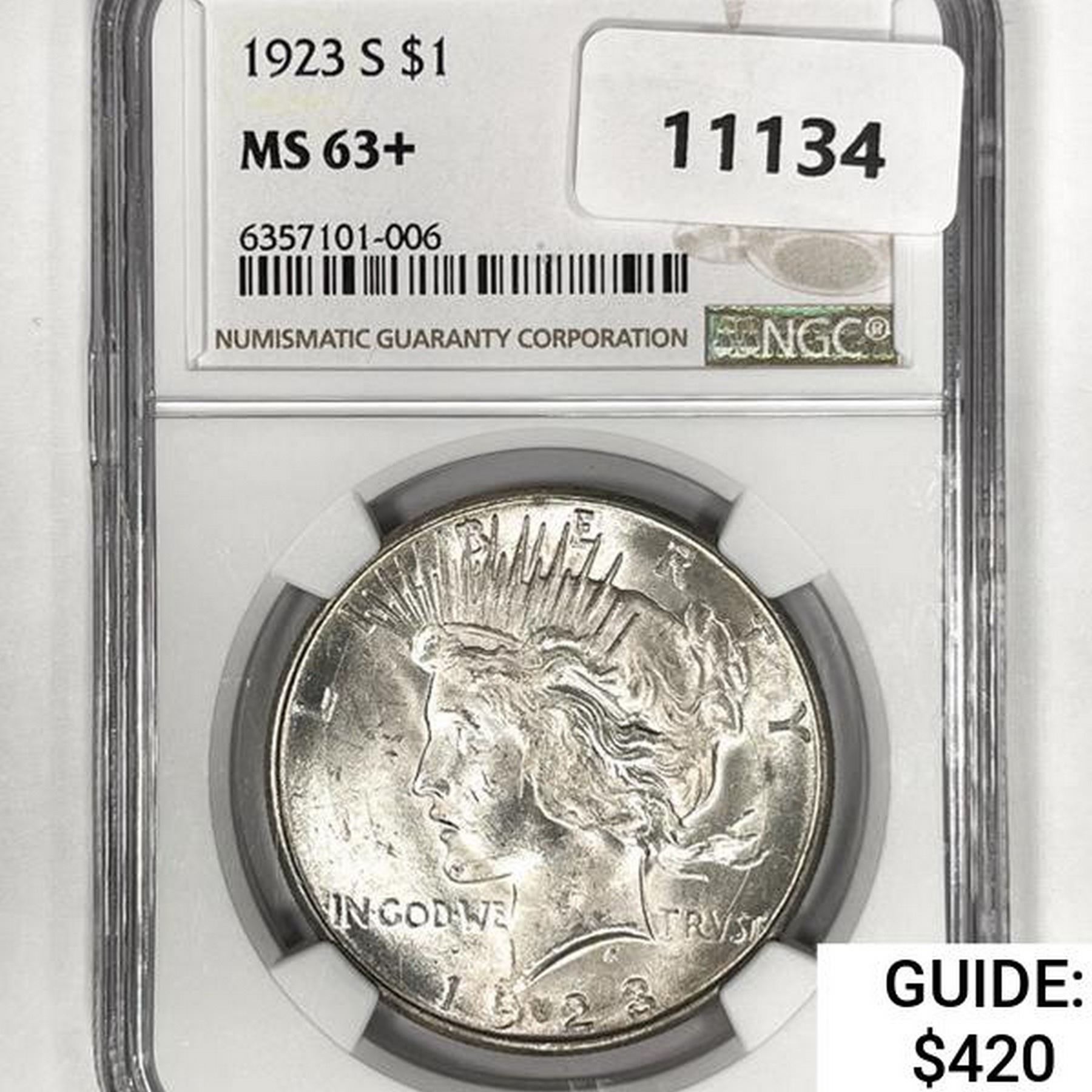 1923-S Silver Peace Dollar NGC MS63+