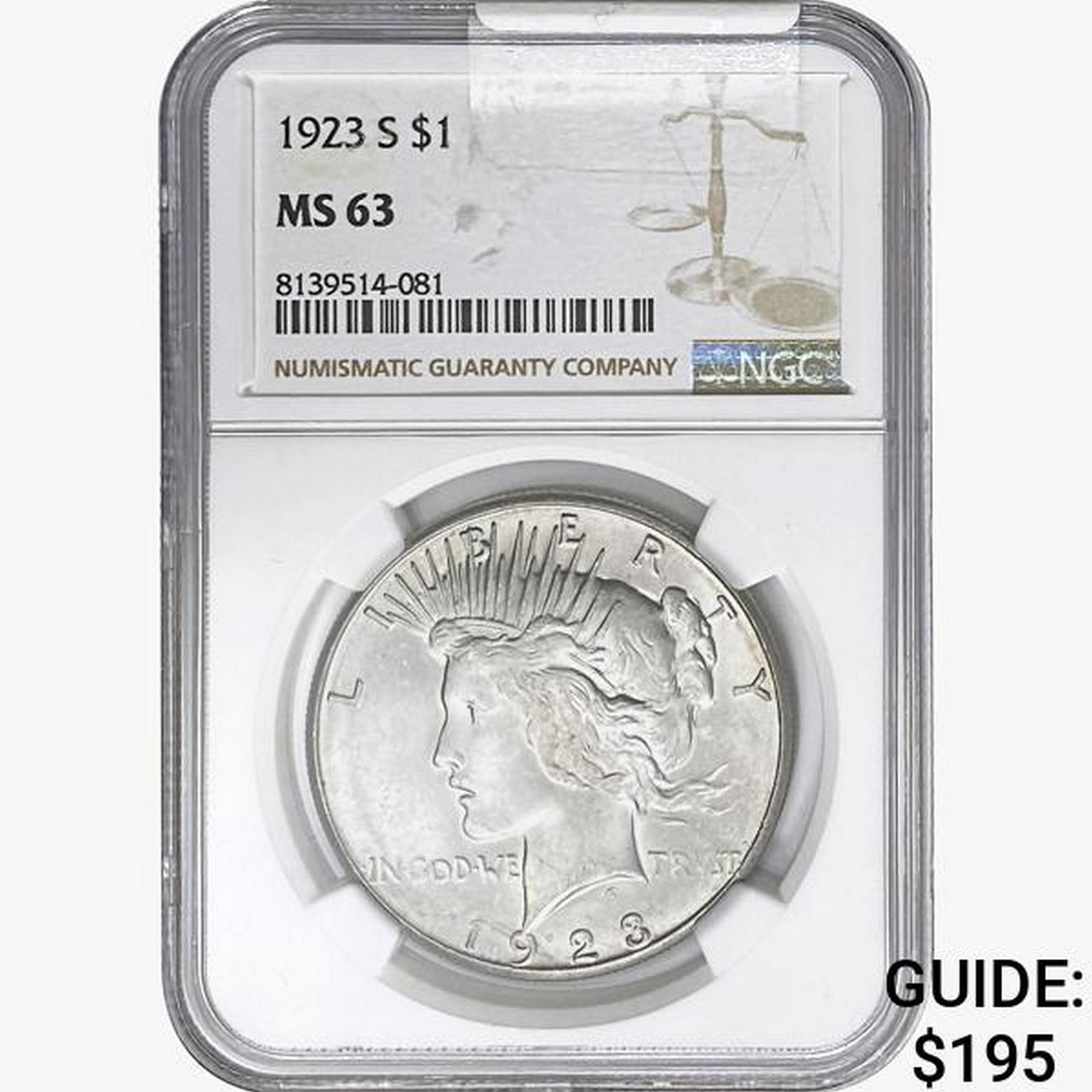 1923-S Silver Peace Dollar NGC MS63