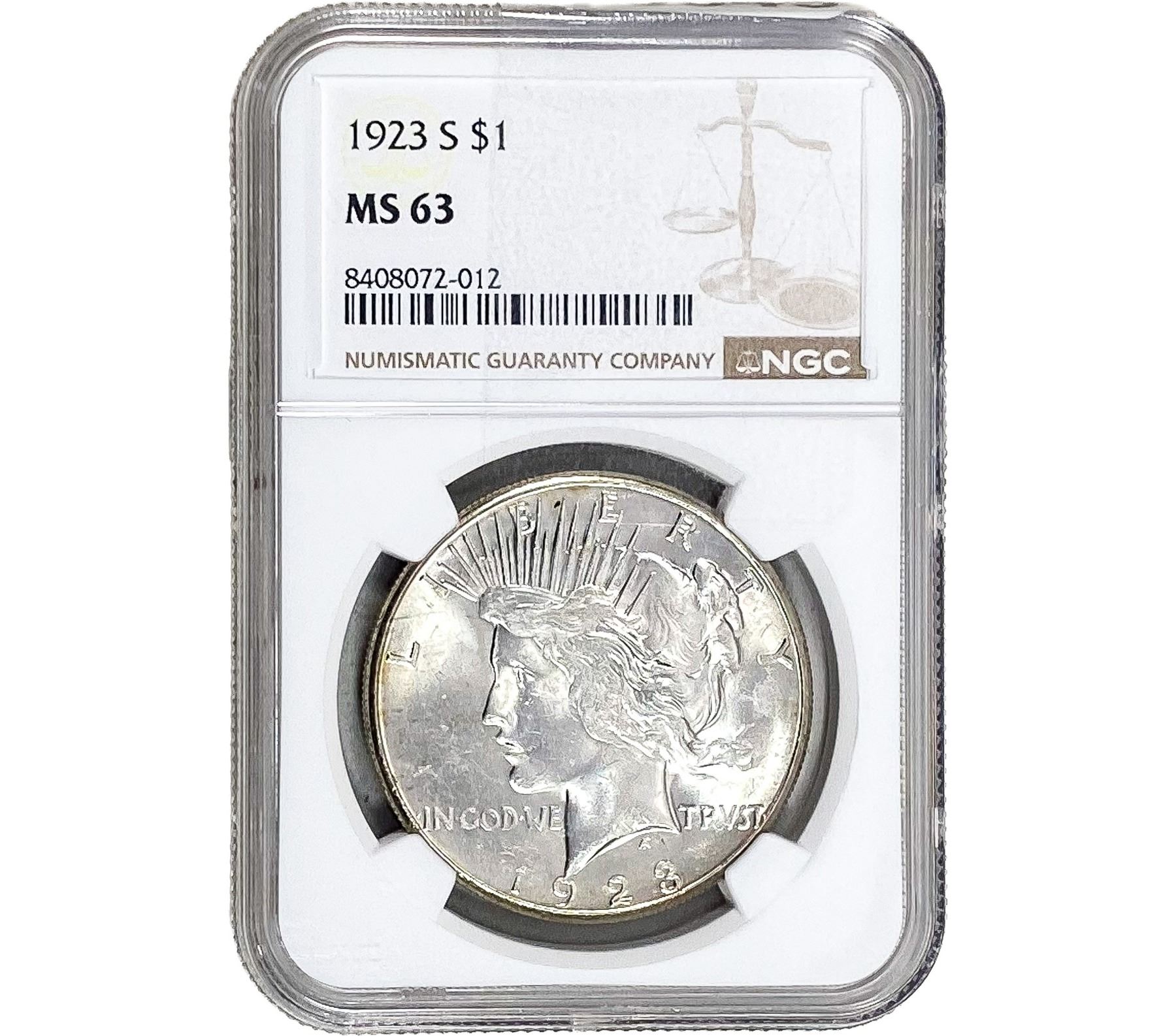 1923-S Silver Peace Dollar NGC MS63