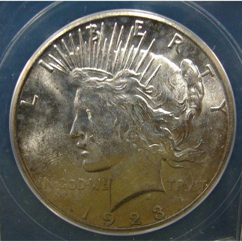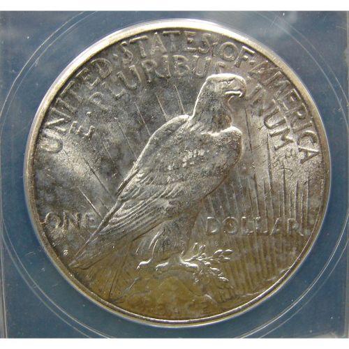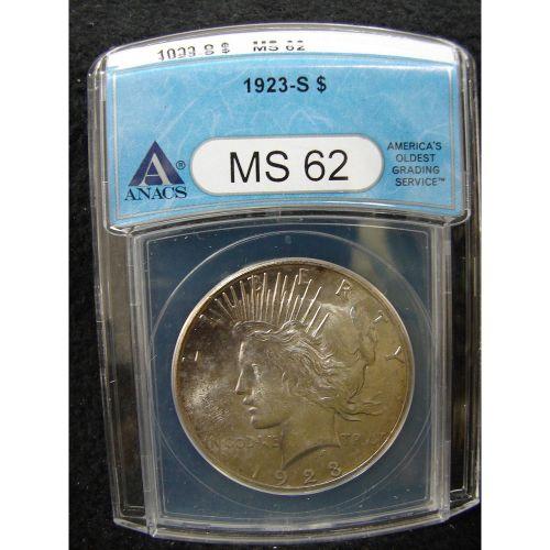 1923-S U.S. PEACE DOLLAR. Graded by ANACS. MS 62.
