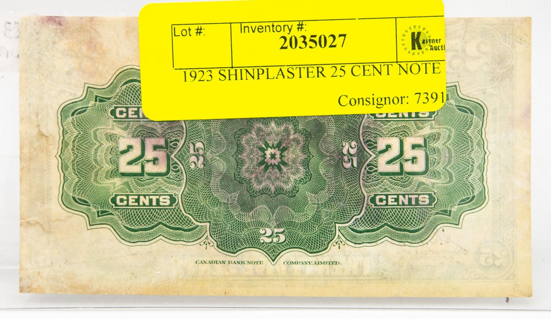 1923 SHINPLASTER 25 CENT NOTE