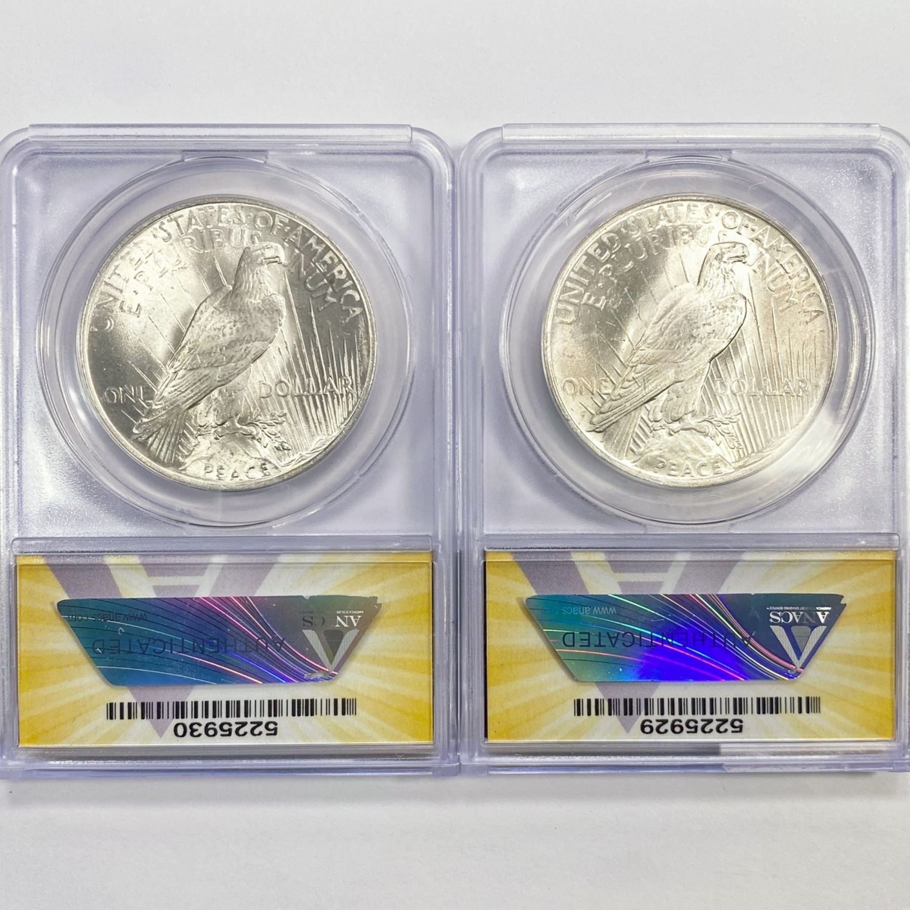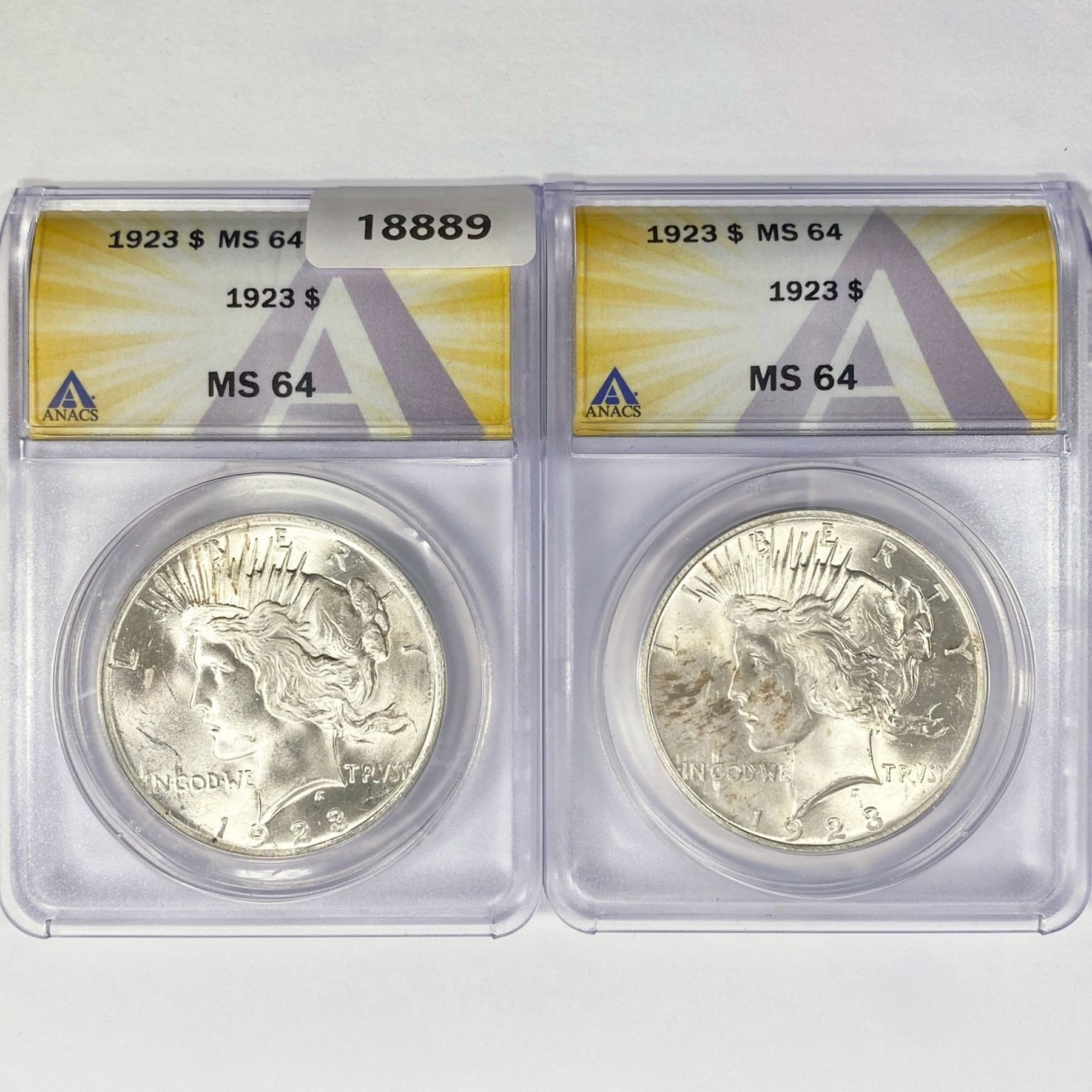 1923 Set (2) Silver Peace Dollar ANACS MS64