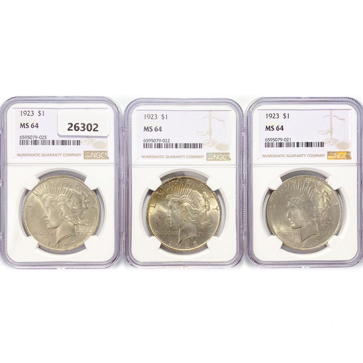 1923 Set (3) Silver Peace Dollar NGC MS64