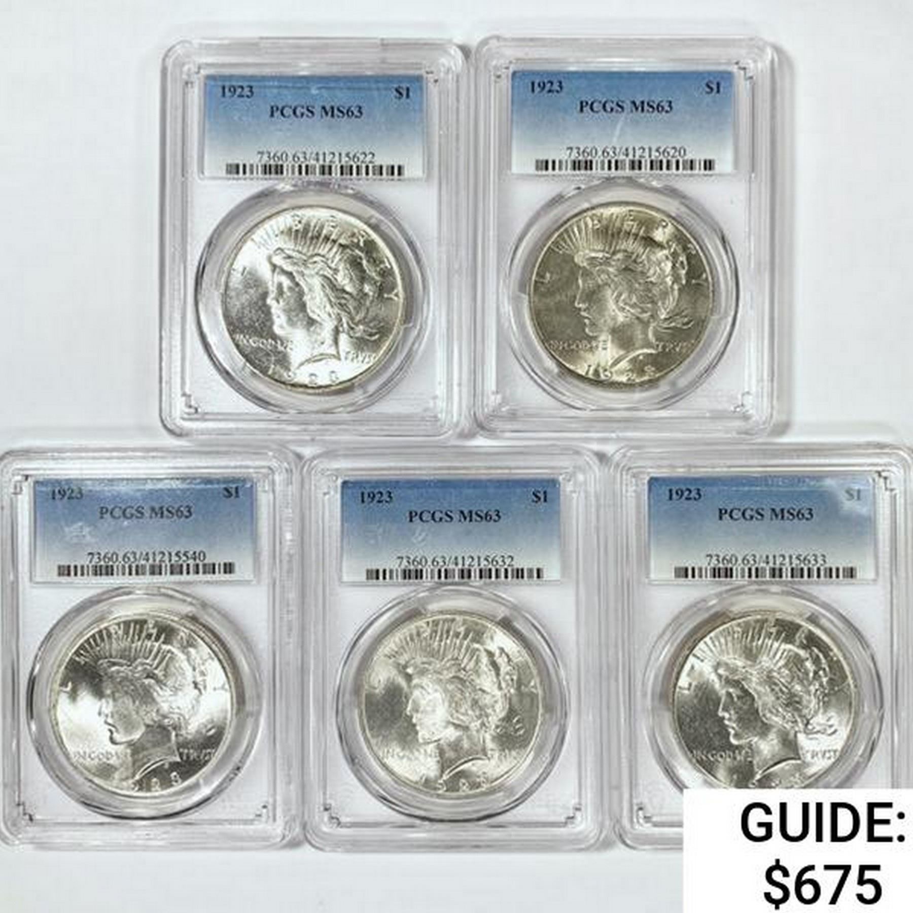 1923 Set [5] Silver Peace Dollar PCGS MS63