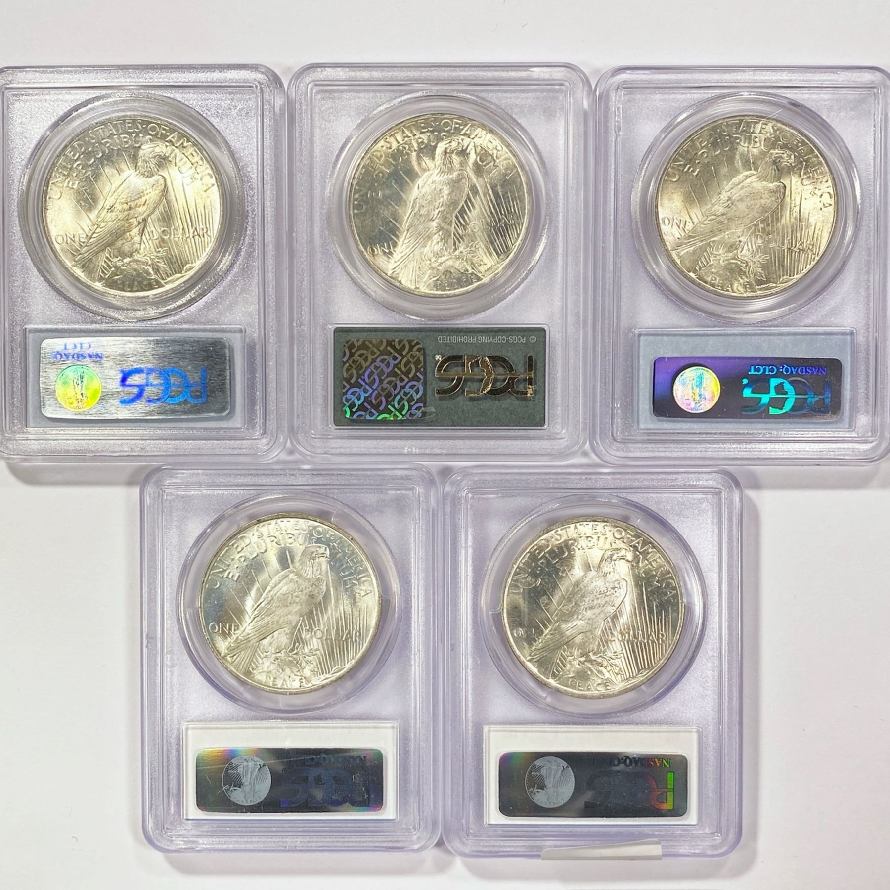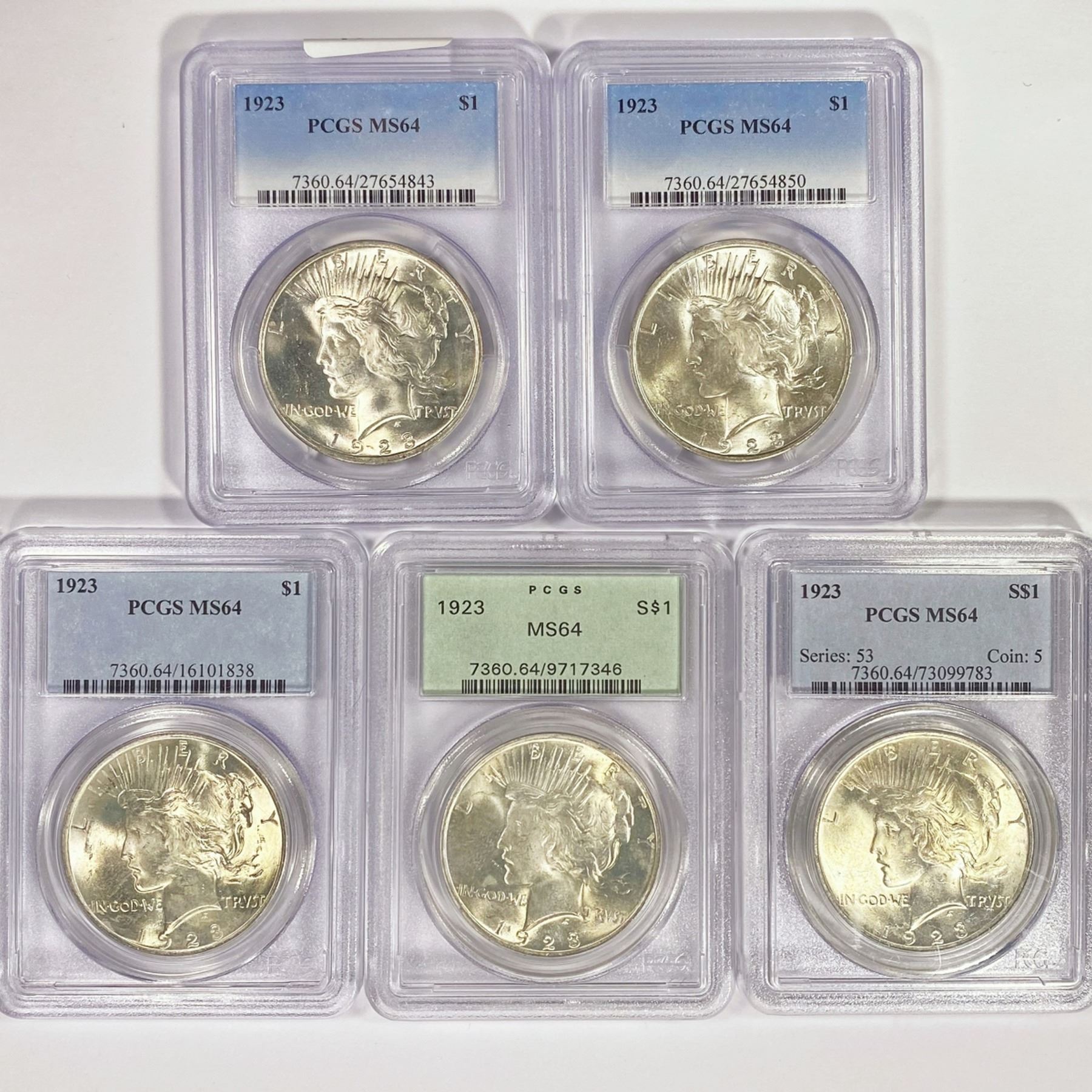 1923 Set (5) Silver Peace Dollar PCGS MS64
