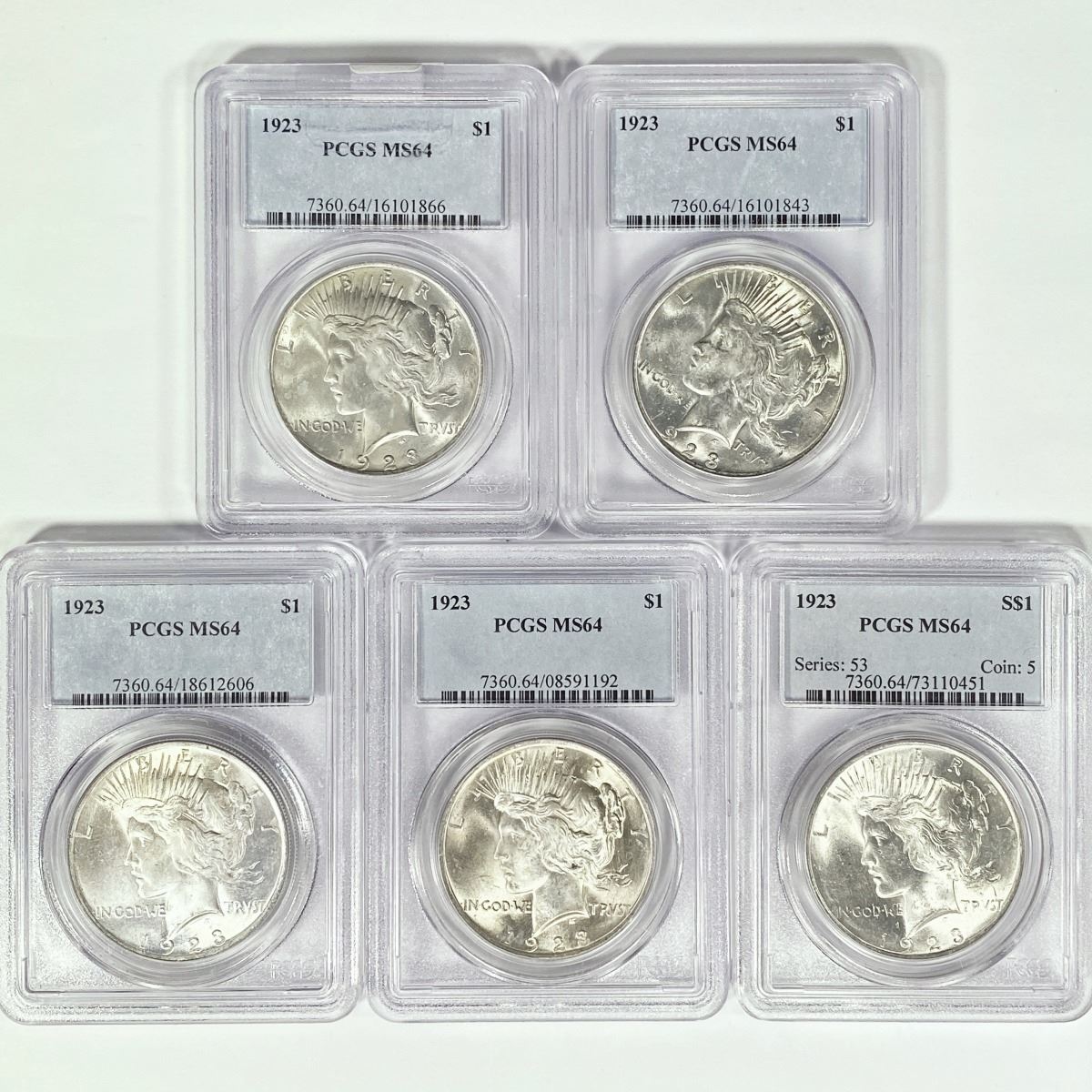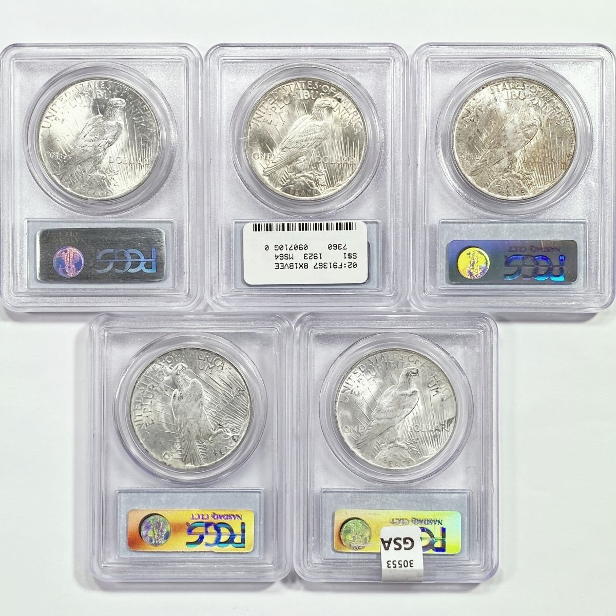 1923 Set (5) Silver Peace Dollar PCGS MS64