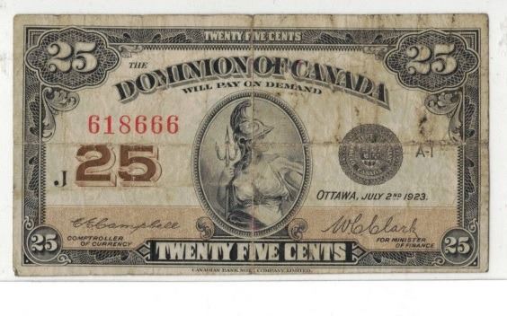 1923 Shinplaster Twenty Five Cent Dominion Of Canada Note