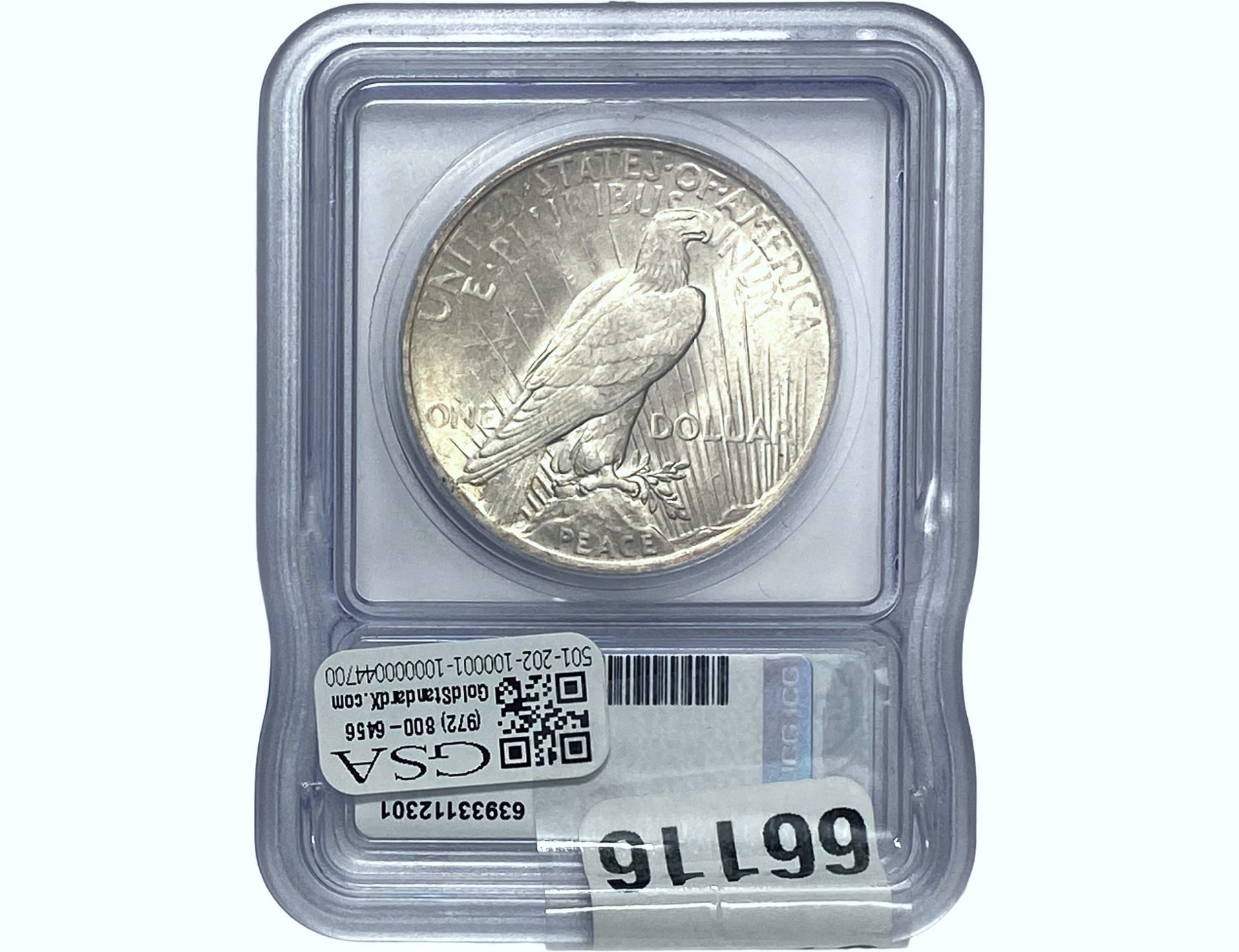 l. All non-certified coins and currency are guaranteed genuine, but are not guaranteed as to grade, since grading is a matter of opinion, an art and not a science, and therefore the description rendered by GSA or any third-party grading service may not agree with the opinion of others (including trained experts), and the same expert may not grade the same item with the same grade at two different times. GSA may, but is not obligated to, express an opinion as to non-certified numismatic items, in GSA’s opinion, or by its employees’ experience and the current interpretation of the American Numismatic Association’s standards as of the date the catalog was prepared. There is no guarantee or warranty expressed or implied that the grading opinions utilized by GSA, if any, will meet the standards of any grading service at any time in the future.