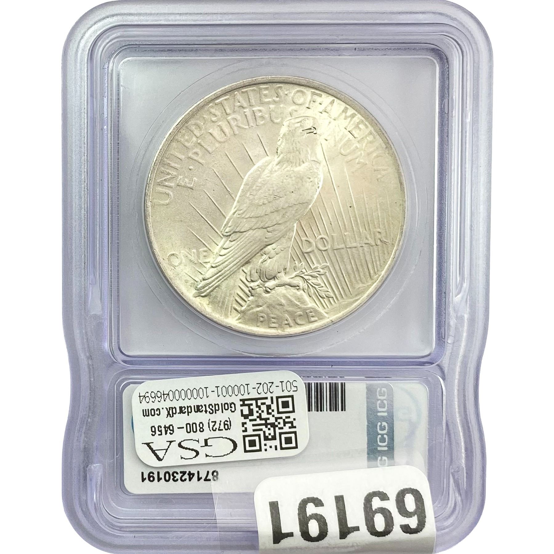 e. Coins sold referencing a third-party grading service are sold “AS IS” without any express or implied warranty, except for a guarantee by GSA that they are genuine. Removal or alteration of the holder, voids all of Bidder’s claims concerning that Product. Certain warranties may be available from the grading services and Bidders are referred to them for further details: Numismatic Guaranty Corporation (NGC), PO Box 4776, Sarasota, FL 34230, www.ngccoin.com/services/writtenguarantee.asp; Professional Coin Grading Services (PCGS), PO Box 9458, Newport Beach, CA 92658, www.pcgs.com/guarantee.html; ANACS, 6555 S. Kenton St., Ste. 303, Englewood, CO 80111; and Independent Coin Grading Co. (ICG), 7901 East Bellview, Ave., Suite 50, Englewood, CO 80111.