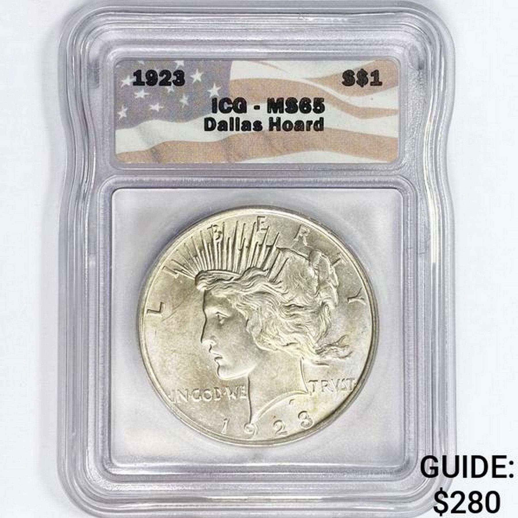 1923 Silver Peace Dollar ICG MS65 Dallas Hoard
