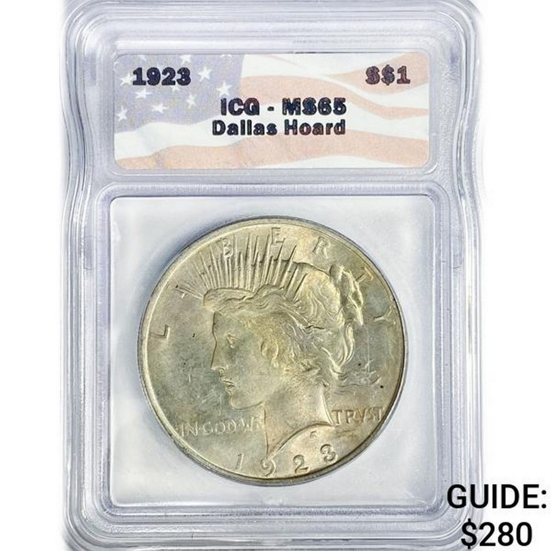 1923 Silver Peace Dollar ICG MS65 Dallas Hoard