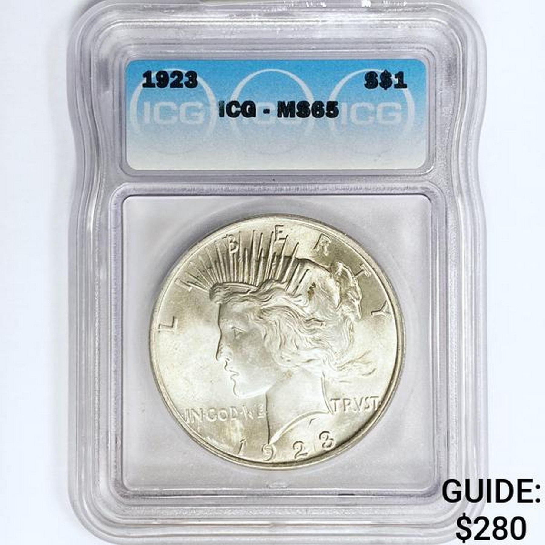 1923 Silver Peace Dollar ICG MS65