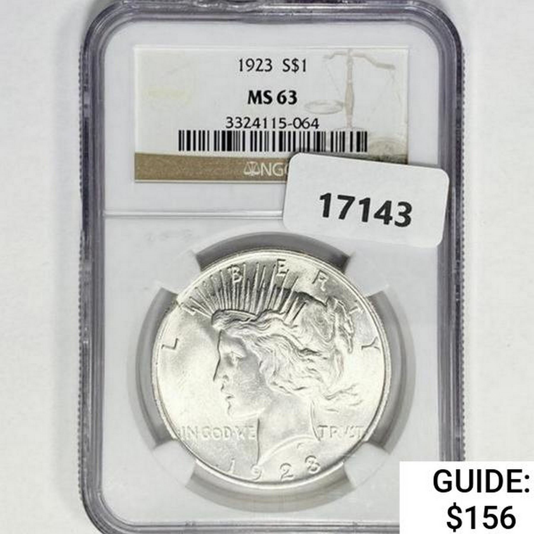 1923 Silver Peace Dollar NGC MS63