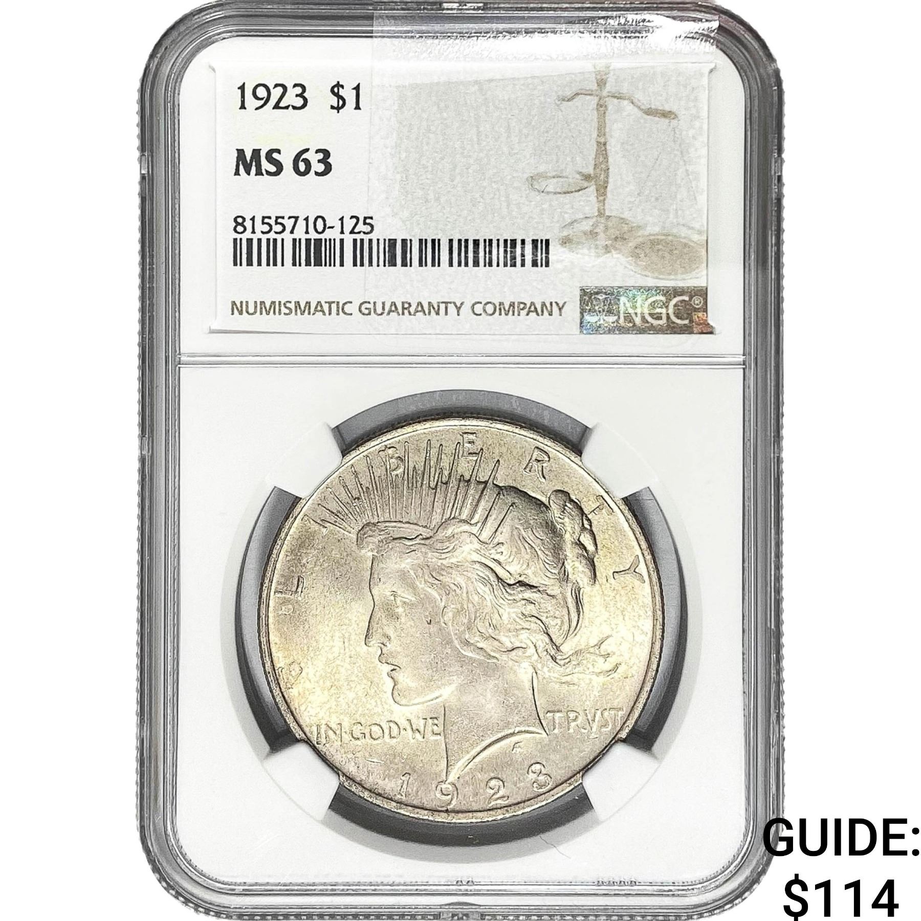 1923 Silver Peace Dollar NGC MS63