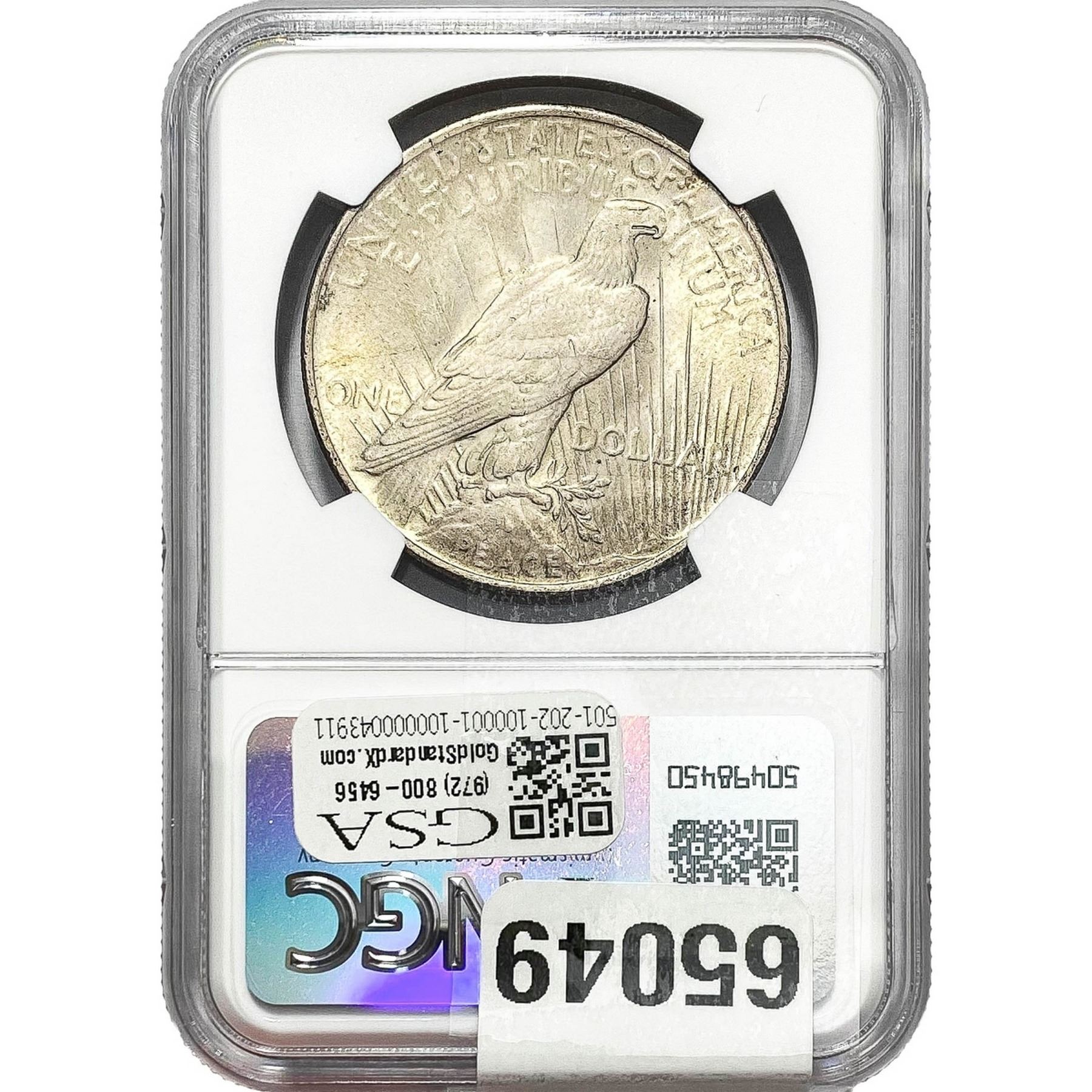 e. Coins sold referencing a third-party grading service are sold “AS IS” without any express or implied warranty, except for a guarantee by GSA that they are genuine. Removal or alteration of the holder, voids all of Bidder’s claims concerning that Product. Certain warranties may be available from the grading services and Bidders are referred to them for further details: Numismatic Guaranty Corporation (NGC), PO Box 4776, Sarasota, FL 34230, www.ngccoin.com/services/writtenguarantee.asp; Professional Coin Grading Services (PCGS), PO Box 9458, Newport Beach, CA 92658, www.pcgs.com/guarantee.html; ANACS, 6555 S. Kenton St., Ste. 303, Englewood, CO 80111; and Independent Coin Grading Co. (ICG), 7901 East Bellview, Ave., Suite 50, Englewood, CO 80111.