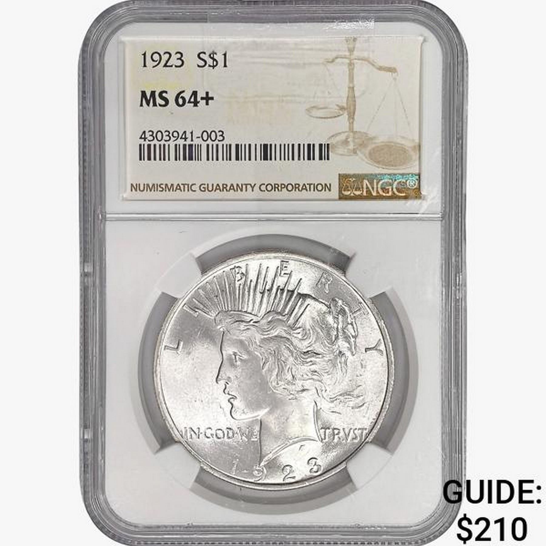 1923 Silver Peace Dollar NGC MS64+