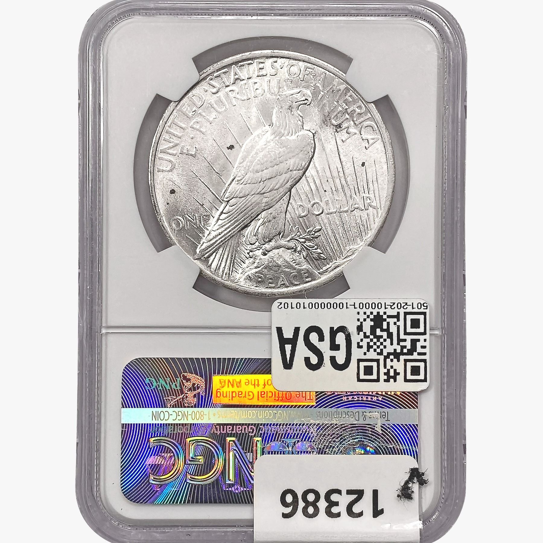 COINS AND CURRENCY LISTED IN GSA’S CATALOG AS GRADED AND ENCAPSULATED BY PCGS, NGC, ANACS, ICG, PCGS CURRENCY, PMG, PCGS BANKNOTE GRADING, CMC OR ANY OTHER THIRD-PARTY GRADING SERVICE ARE LIKEWISE SOLD “AS-IS” EXCEPT AS EXPRESSLY SET FORTH HEREIN. ALL THIRD-PARTY GRADING SERVICE GUARANTEES, INCLUDING AUTHENTICITY, ARE THE SOLE RESPONSIBILITY OF THE THIRD-PARTY GRADING SERVICE AND NOT WARRANTIES OR GUARANTEES OF GSA. BIDDERS SHOULD CONTACT THESE THIRD-PARTY GRADING SERVICES DIRECTLY WITH RESPECT TO ANY CLAIMS OR QUESTIONS THEY MAY HAVE CONCERNING THEIR GUARANTEES AND WARRANTIES. BIDDERS ACKNOWLEDGE AND AGREE THAT AUCTIONEER IS NOT BOUND BY OR LIABLE FOR ANY OPINION OR CERTIFICATION BY ANY THIRD-PARTY GRADING SERVICE. REMOVAL OF A PRODUCT FROM ITS PROTECTIVE CASING OR HOLDER OR ALTERATION OF ANY COIN HOLDER WAIVES ALL RIGHTS CONCERNING THE PRODUCT CONTAINED THEREIN.