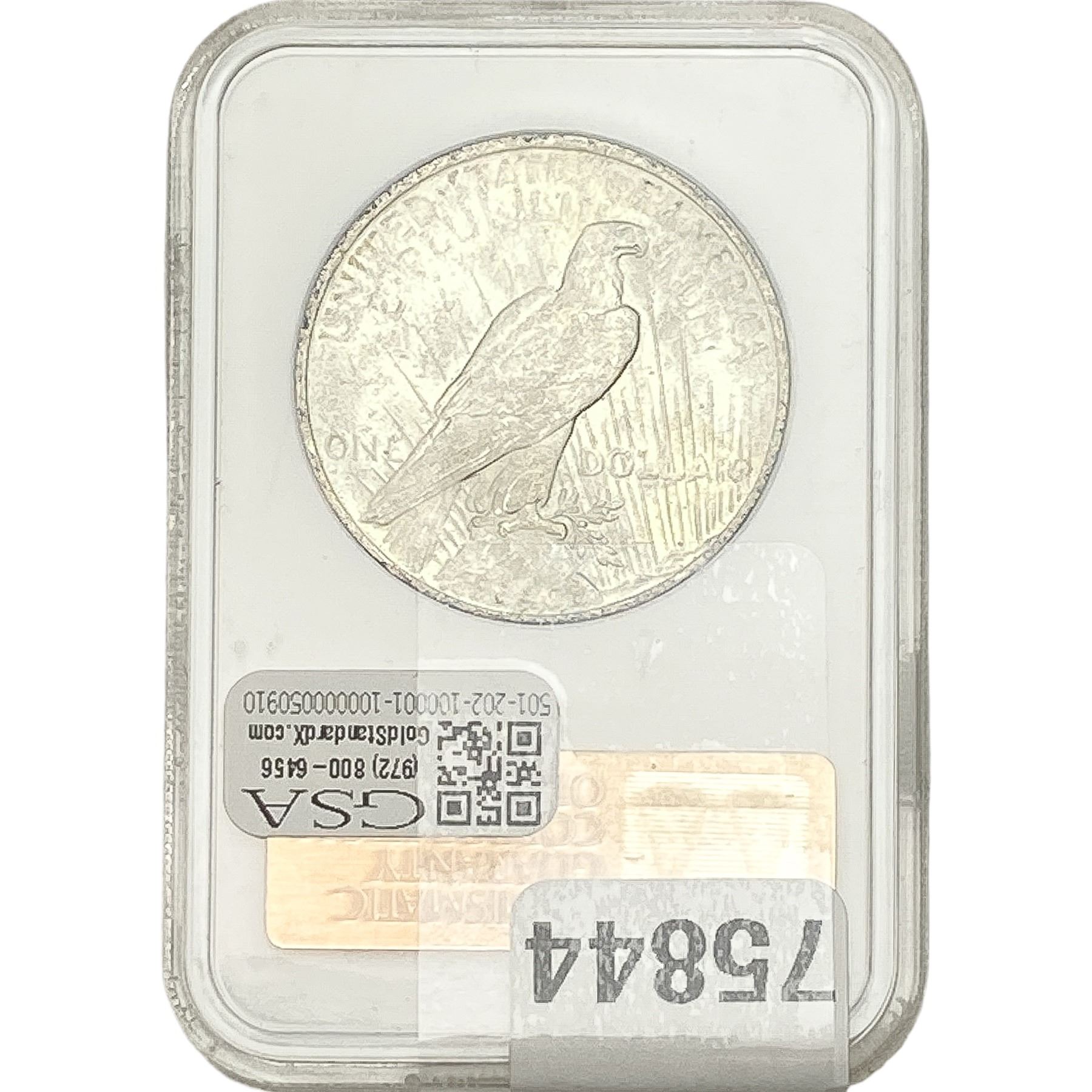 l. All non-certified coins and currency are guaranteed genuine, but are not guaranteed as to grade, since grading is a matter of opinion, an art and not a science, and therefore the description rendered by GSA or any third-party grading service may not agree with the opinion of others (including trained experts), and the same expert may not grade the same item with the same grade at two different times. GSA may, but is not obligated to, express an opinion as to non-certified numismatic items, in GSA’s opinion, or by its employees’ experience and the current interpretation of the American Numismatic Association’s standards as of the date the catalog was prepared. There is no guarantee or warranty expressed or implied that the grading opinions utilized by GSA, if any, will meet the standards of any grading service at any time in the future.