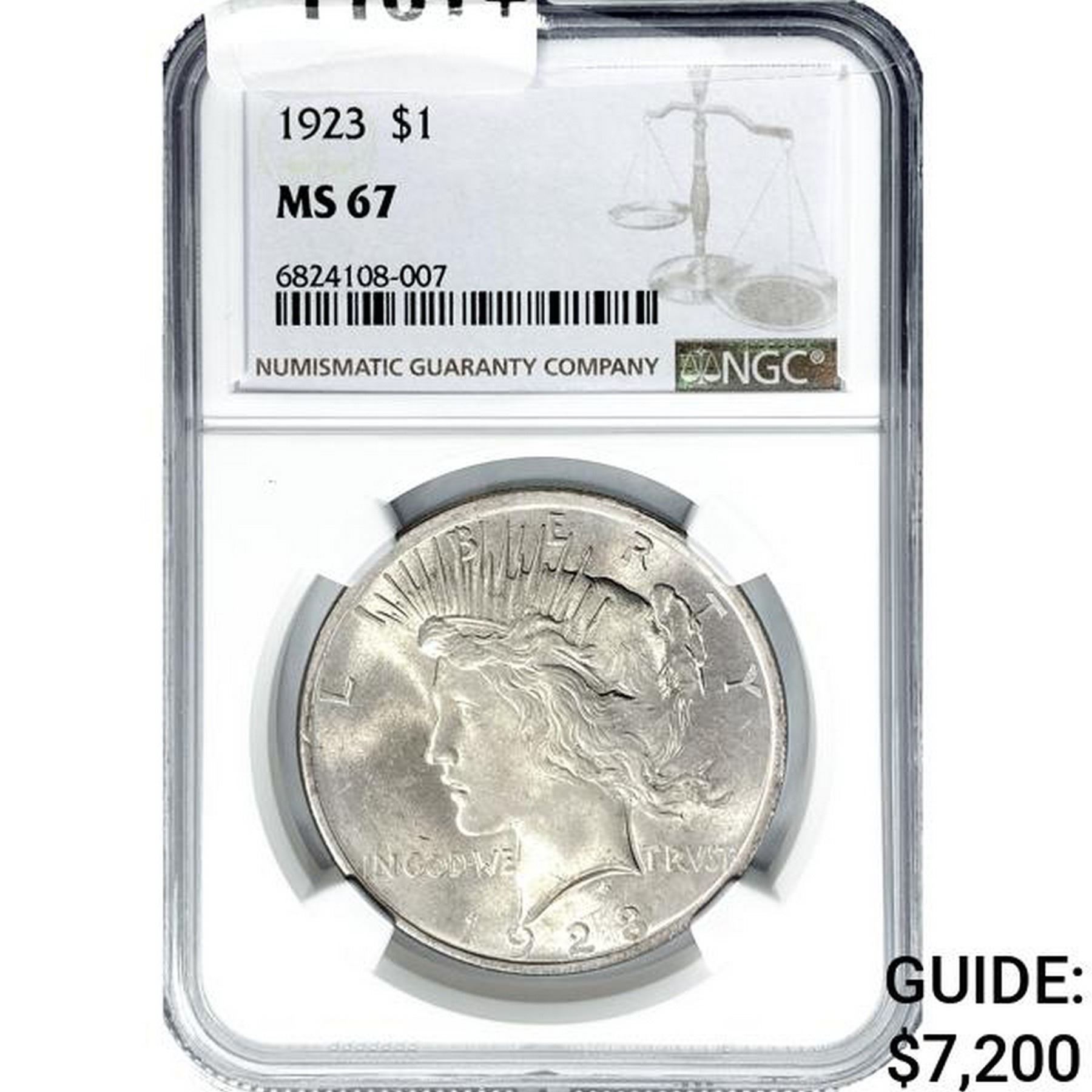 1923 Silver Peace Dollar NGC MS67
