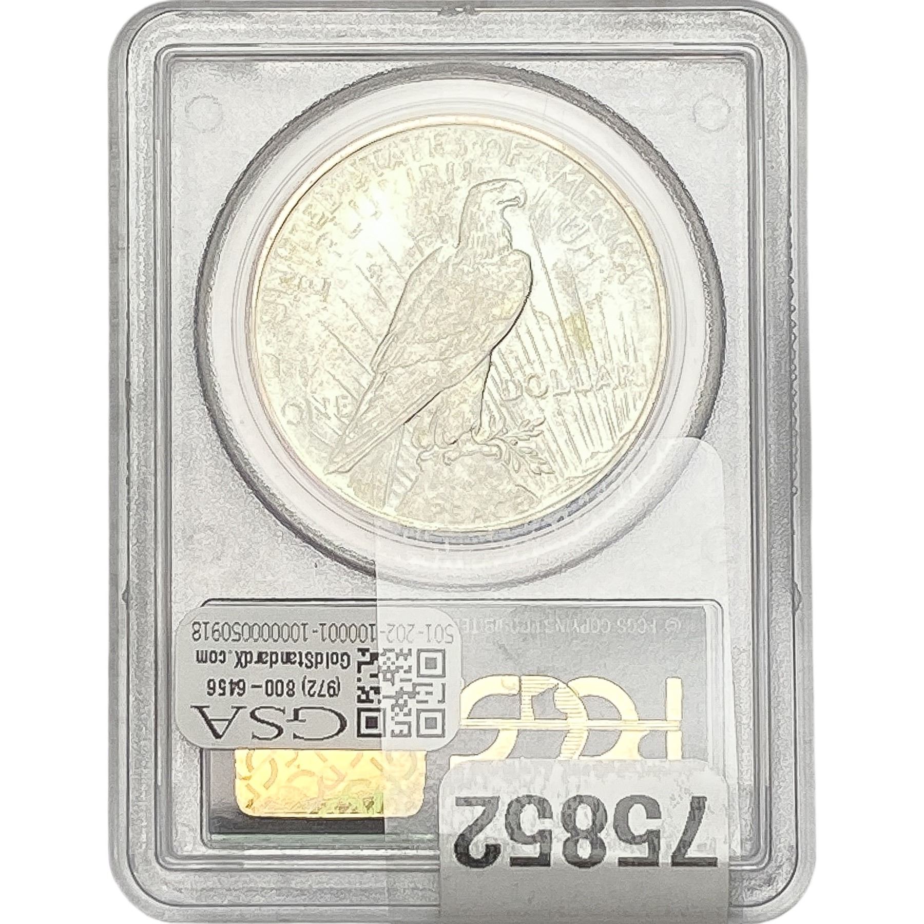 COINS AND CURRENCY LISTED IN GSA’S CATALOG AS GRADED AND ENCAPSULATED BY PCGS, NGC, ANACS, ICG, PCGS CURRENCY, PMG, PCGS BANKNOTE GRADING, CMC OR ANY OTHER THIRD-PARTY GRADING SERVICE ARE LIKEWISE SOLD “AS-IS” EXCEPT AS EXPRESSLY SET FORTH HEREIN. ALL THIRD-PARTY GRADING SERVICE GUARANTEES, INCLUDING AUTHENTICITY, ARE THE SOLE RESPONSIBILITY OF THE THIRD-PARTY GRADING SERVICE AND NOT WARRANTIES OR GUARANTEES OF GSA. BIDDERS SHOULD CONTACT THESE THIRD-PARTY GRADING SERVICES DIRECTLY WITH RESPECT TO ANY CLAIMS OR QUESTIONS THEY MAY HAVE CONCERNING THEIR GUARANTEES AND WARRANTIES. BIDDERS ACKNOWLEDGE AND AGREE THAT AUCTIONEER IS NOT BOUND BY OR LIABLE FOR ANY OPINION OR CERTIFICATION BY ANY THIRD-PARTY GRADING SERVICE. REMOVAL OF A PRODUCT FROM ITS PROTECTIVE CASING OR HOLDER OR ALTERATION OF ANY COIN HOLDER WAIVES ALL RIGHTS CONCERNING THE PRODUCT CONTAINED THEREIN.