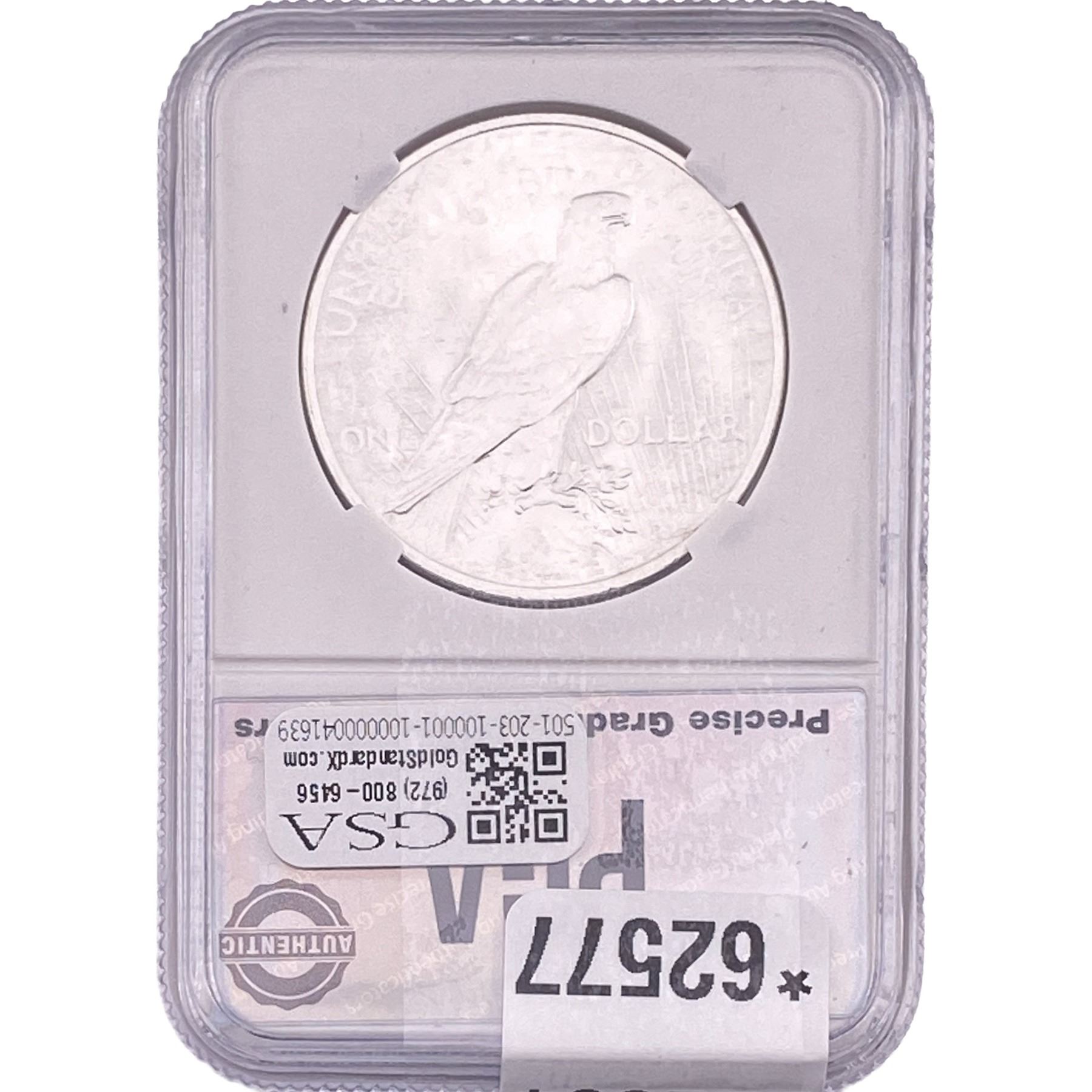 l. All non-certified coins and currency are guaranteed genuine, but are not guaranteed as to grade, since grading is a matter of opinion, an art and not a science, and therefore the description rendered by GSA or any third-party grading service may not agree with the opinion of others (including trained experts), and the same expert may not grade the same item with the same grade at two different times. GSA may, but is not obligated to, express an opinion as to non-certified numismatic items, in GSA’s opinion, or by its employees’ experience and the current interpretation of the American Numismatic Association’s standards as of the date the catalog was prepared. There is no guarantee or warranty expressed or implied that the grading opinions utilized by GSA, if any, will meet the standards of any grading service at any time in the future.
