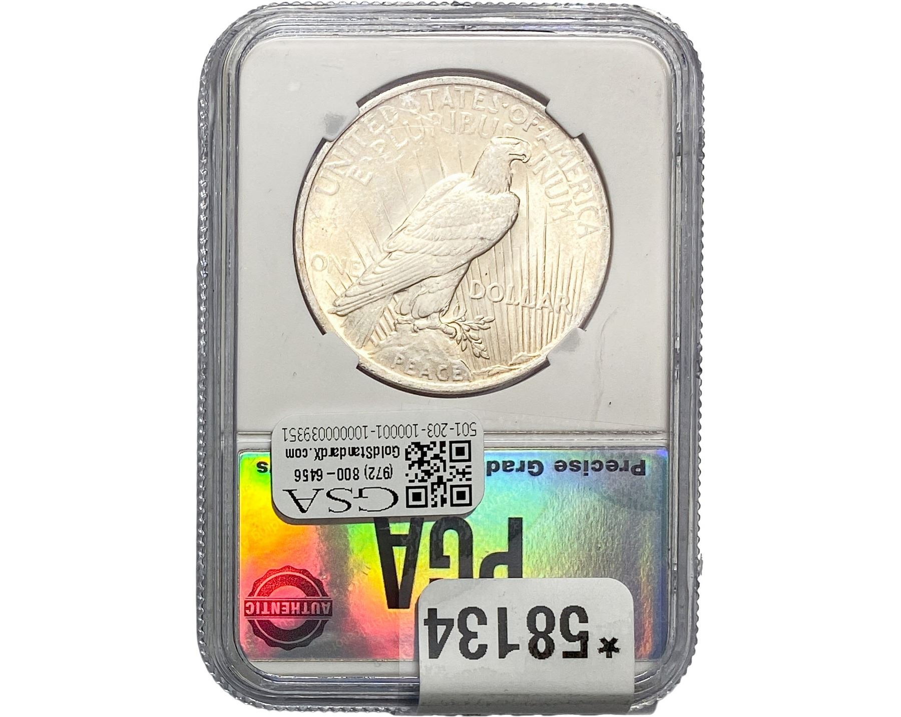 l. All non-certified coins and currency are guaranteed genuine, but are not guaranteed as to grade, since grading is a matter of opinion, an art and not a science, and therefore the description rendered by GSA or any third-party grading service may not agree with the opinion of others (including trained experts), and the same expert may not grade the same item with the same grade at two different times. GSA may, but is not obligated to, express an opinion as to non-certified numismatic items, in GSA’s opinion, or by its employees’ experience and the current interpretation of the American Numismatic Association’s standards as of the date the catalog was prepared. There is no guarantee or warranty expressed or implied that the grading opinions utilized by GSA, if any, will meet the standards of any grading service at any time in the future.