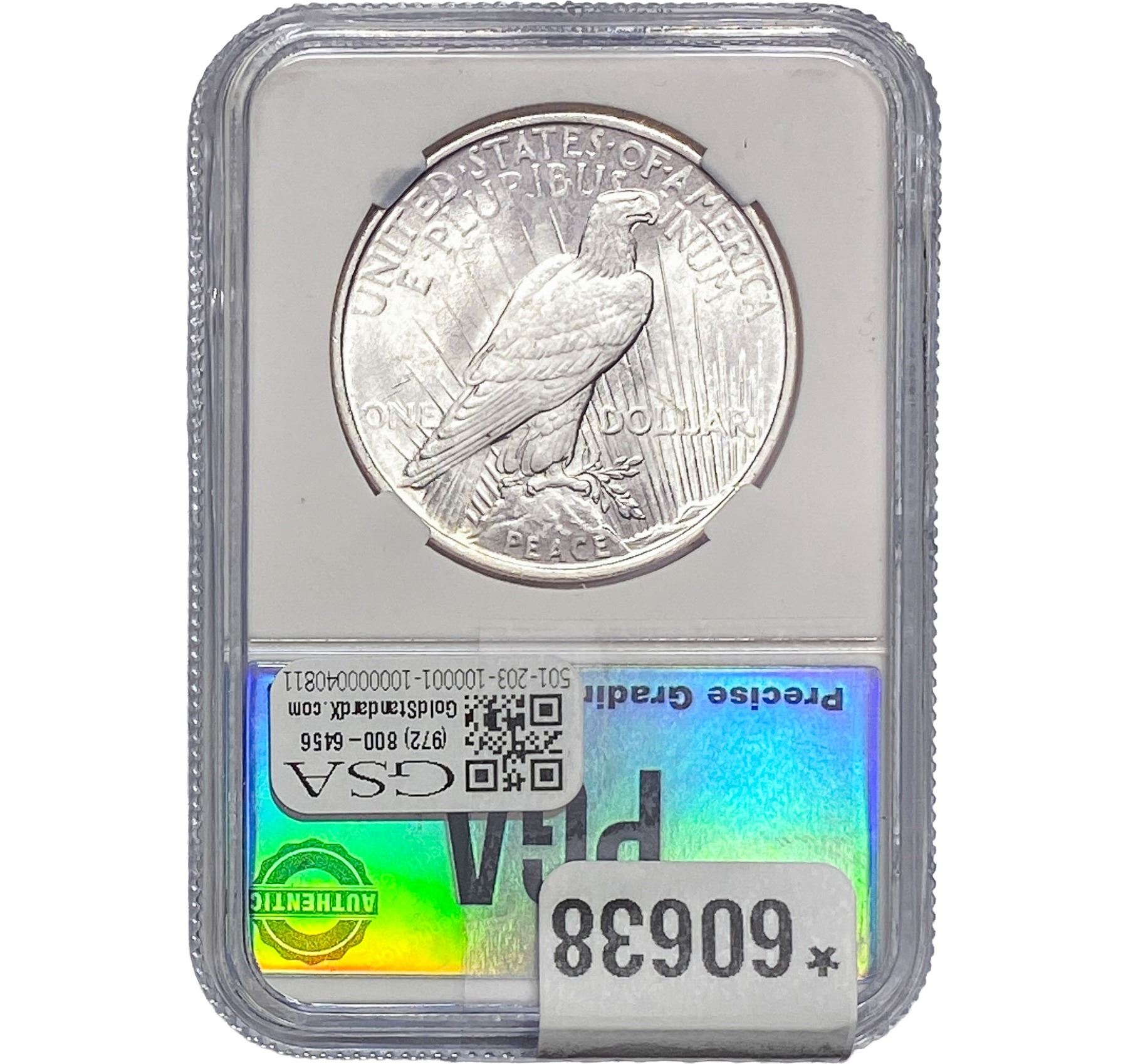 COINS AND CURRENCY LISTED IN GSA’S CATALOG AS GRADED AND ENCAPSULATED BY PCGS, NGC, ANACS, ICG, PCGS CURRENCY, PMG, PCGS BANKNOTE GRADING, CMC OR ANY OTHER THIRD-PARTY GRADING SERVICE ARE LIKEWISE SOLD “AS-IS” EXCEPT AS EXPRESSLY SET FORTH HEREIN. ALL THIRD-PARTY GRADING SERVICE GUARANTEES, INCLUDING AUTHENTICITY, ARE THE SOLE RESPONSIBILITY OF THE THIRD-PARTY GRADING SERVICE AND NOT WARRANTIES OR GUARANTEES OF GSA. BIDDERS SHOULD CONTACT THESE THIRD-PARTY GRADING SERVICES DIRECTLY WITH RESPECT TO ANY CLAIMS OR QUESTIONS THEY MAY HAVE CONCERNING THEIR GUARANTEES AND WARRANTIES. BIDDERS ACKNOWLEDGE AND AGREE THAT AUCTIONEER IS NOT BOUND BY OR LIABLE FOR ANY OPINION OR CERTIFICATION BY ANY THIRD-PARTY GRADING SERVICE. REMOVAL OF A PRODUCT FROM ITS PROTECTIVE CASING OR HOLDER OR ALTERATION OF ANY COIN HOLDER WAIVES ALL RIGHTS CONCERNING THE PRODUCT CONTAINED THEREIN.