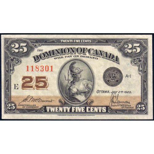 1923 Twenty-Five Cents McCavour-Saunders, DC24-c Serial Number 118301 E, AU-Uncirculated