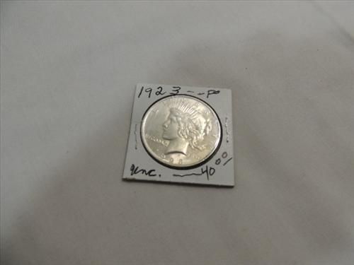 1923 UNCIRCULATED PEACE SILVER DOLLAR. AS SHOWN. VIEW PICTURE FOR DETAIL.