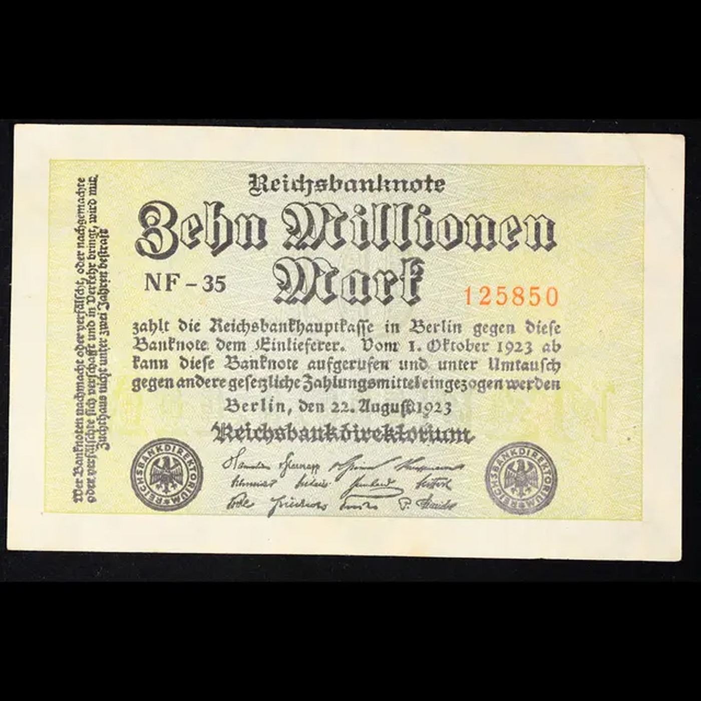 1923 Weimar Germany 10 Millionen Mark Note P# 106C Grades Choice AU/BU Slider.