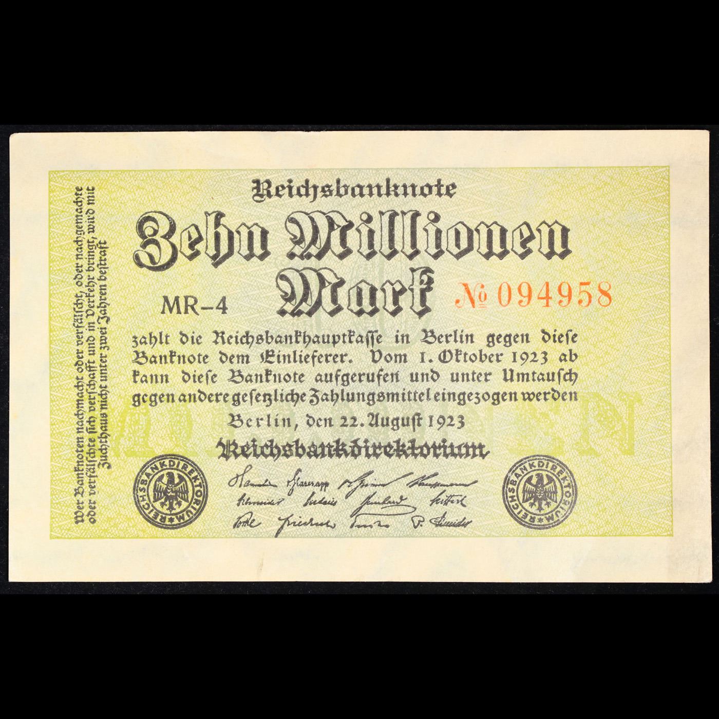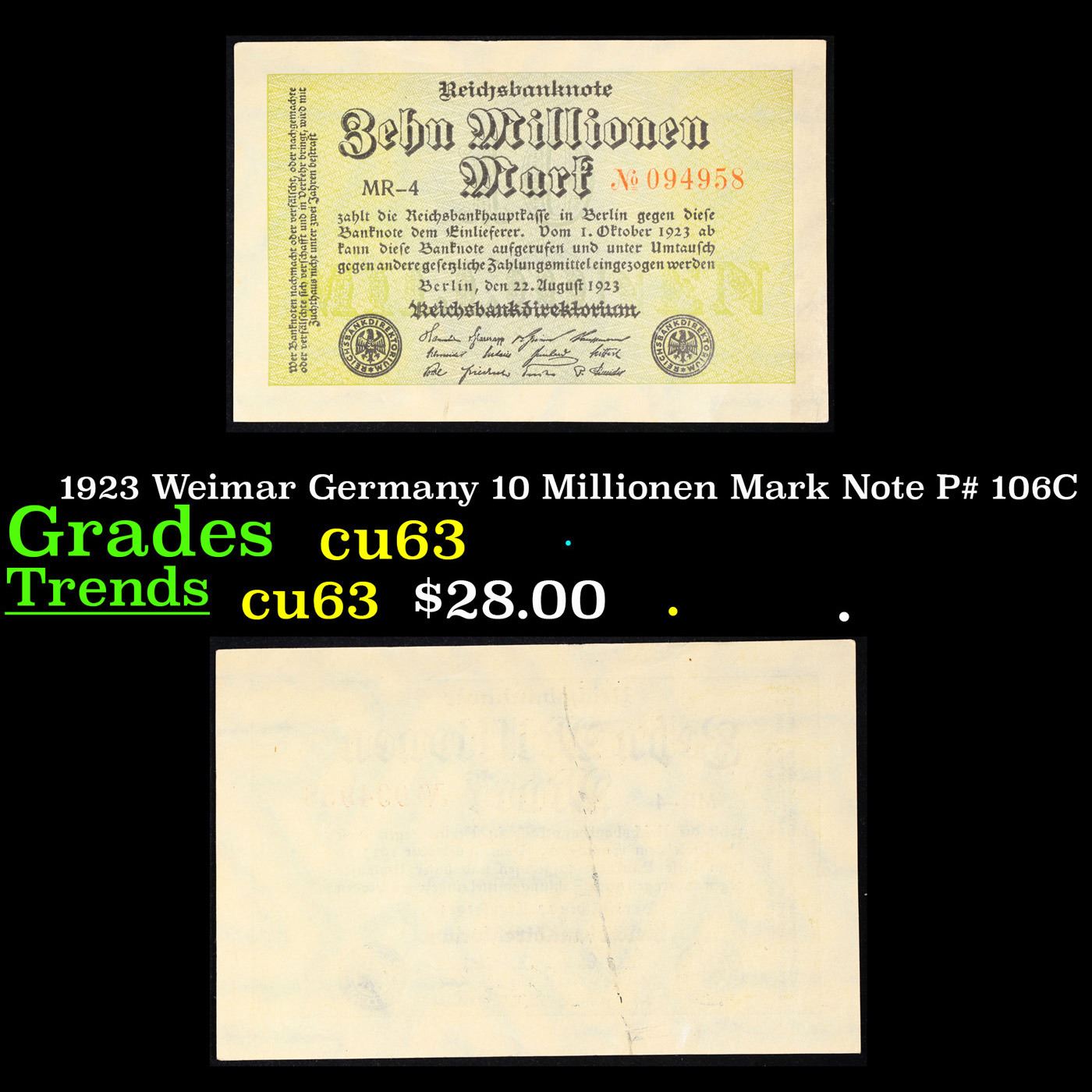1923 Weimar Germany 10 Millionen Mark Note P# 106C Grades Select CU.