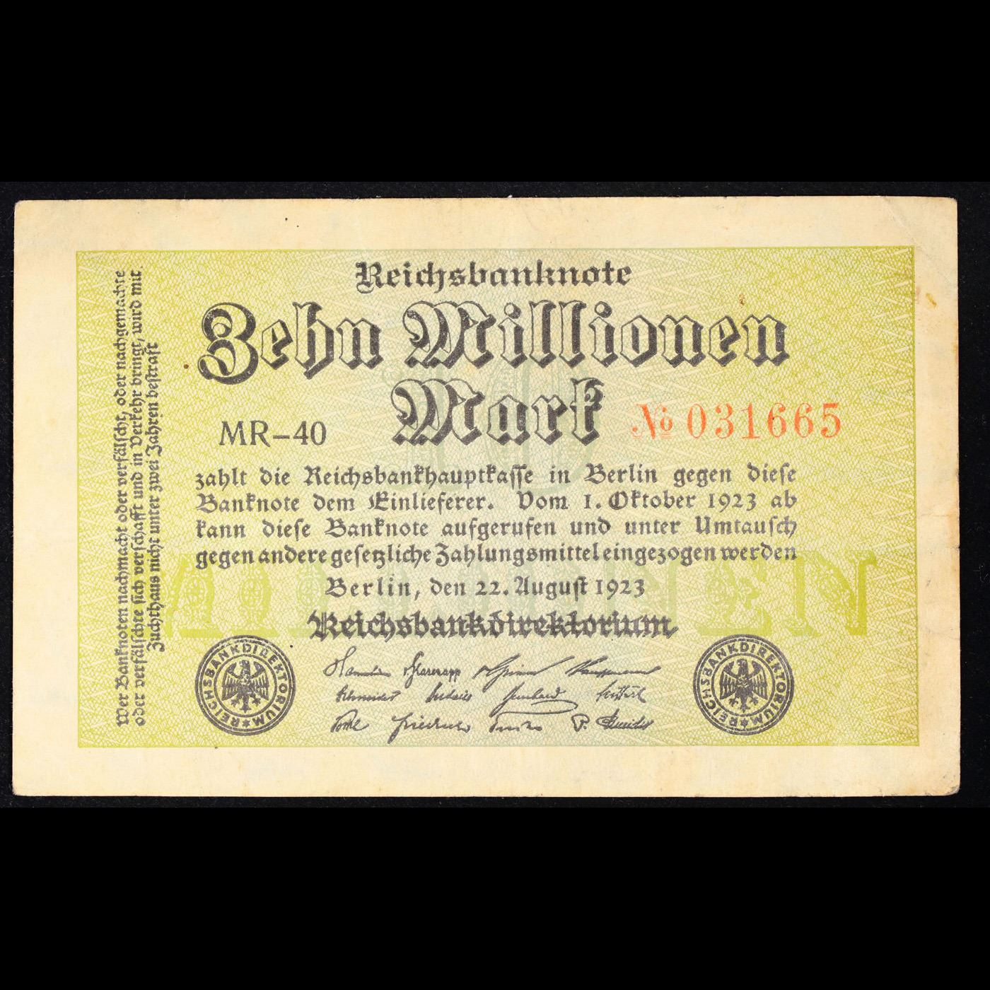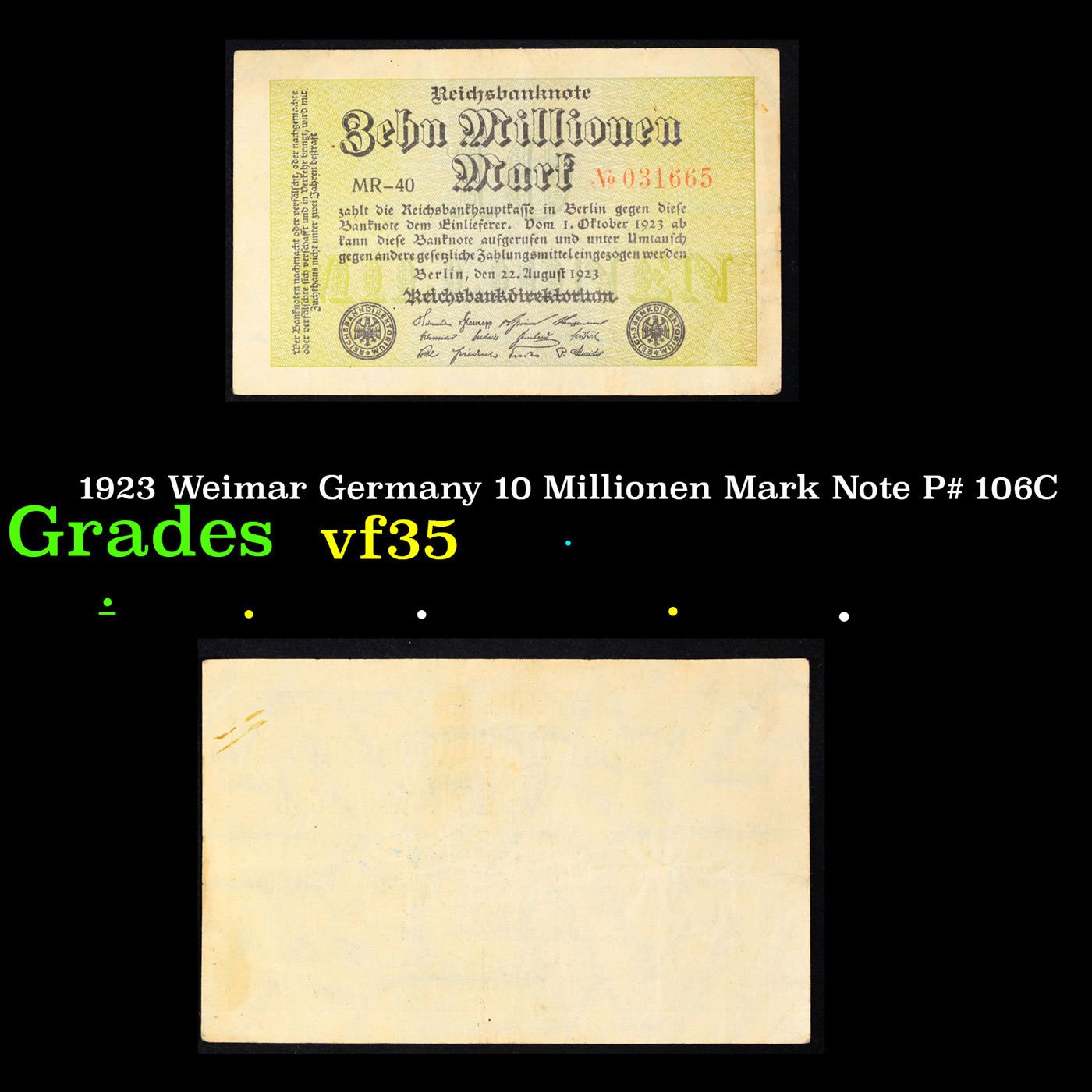 1923 Weimar Germany 10 Millionen Mark Note P# 106C Grades vf++.