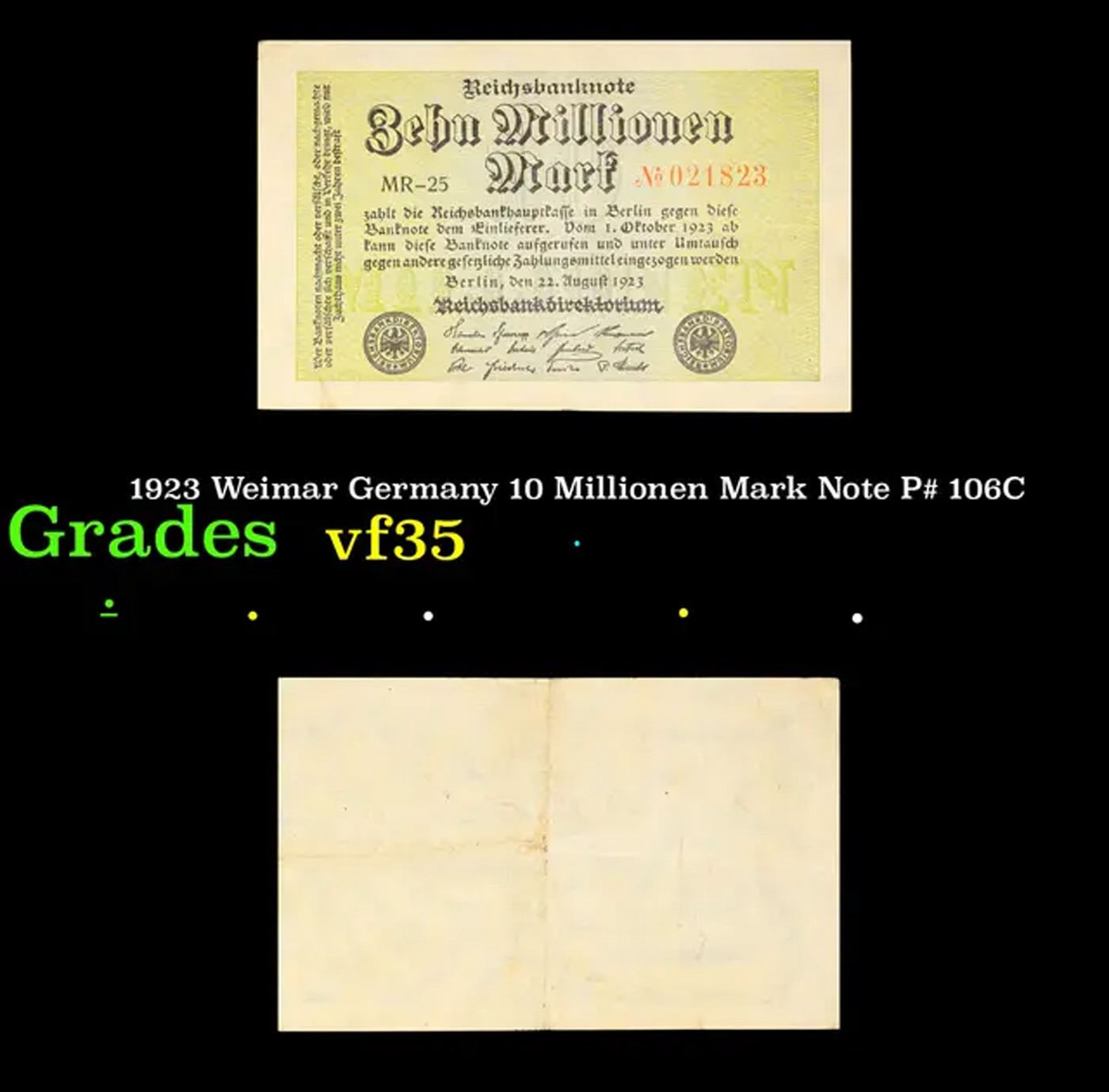1923 Weimar Germany 10 Millionen Mark Note P# 106C Grades vf++.